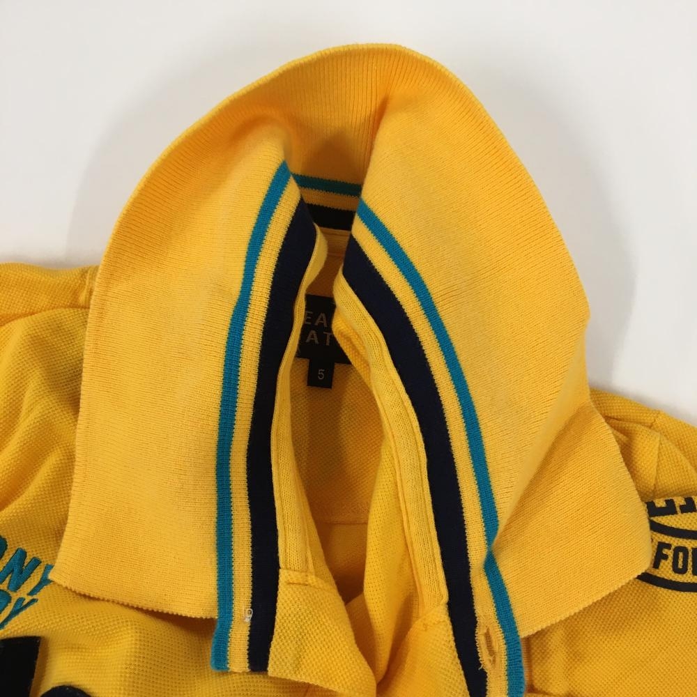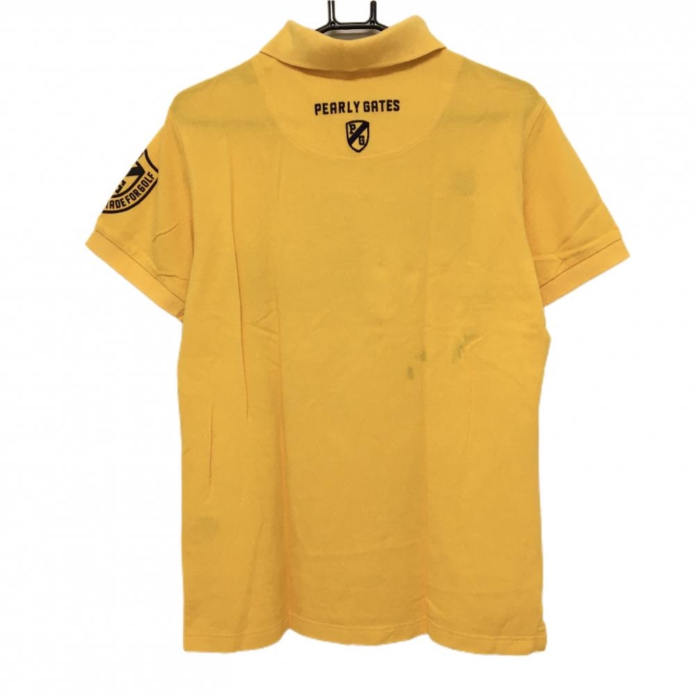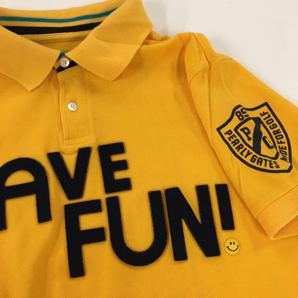 パーリーゲイツ 半袖ポロシャツ オレンジ×ネイビー フェルトワッペン ニコちゃん スマイル メンズ 5(L) ゴルフウェア PEARLY GATES
