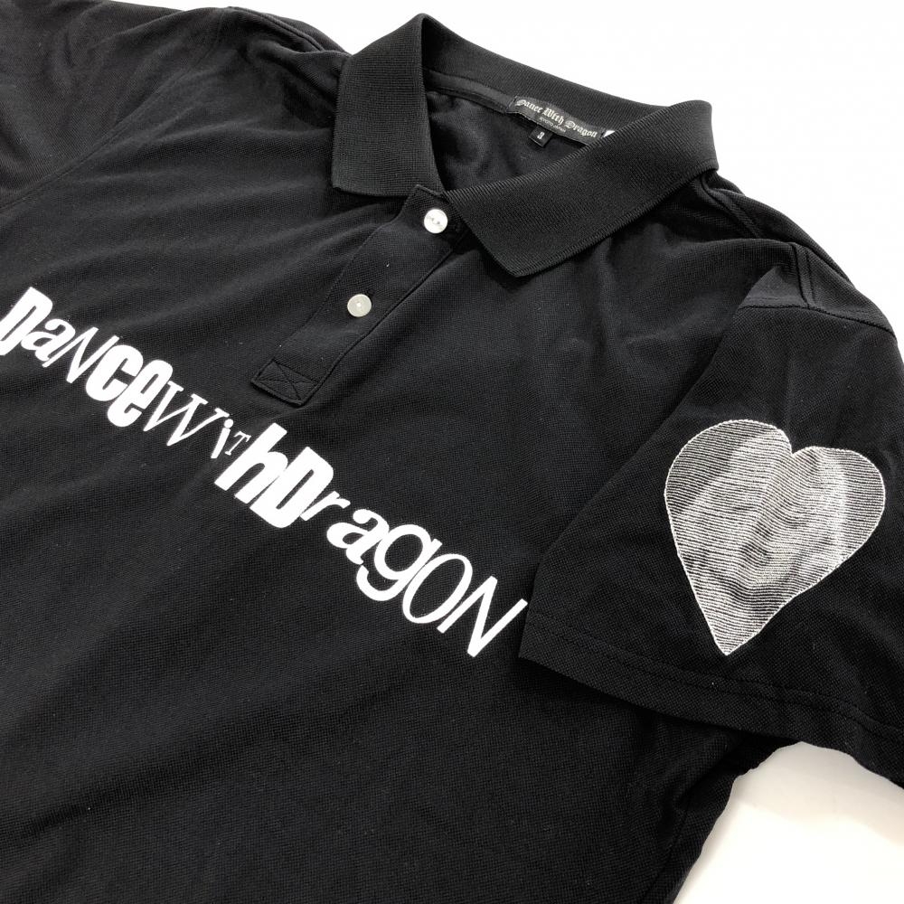 【超美品】ダンスウィズドラゴン 半袖ポロシャツ 黒×白 袖マリリンモンロー フロントロゴ メンズ 3(L) ゴルフウェア Dance With Dragon
