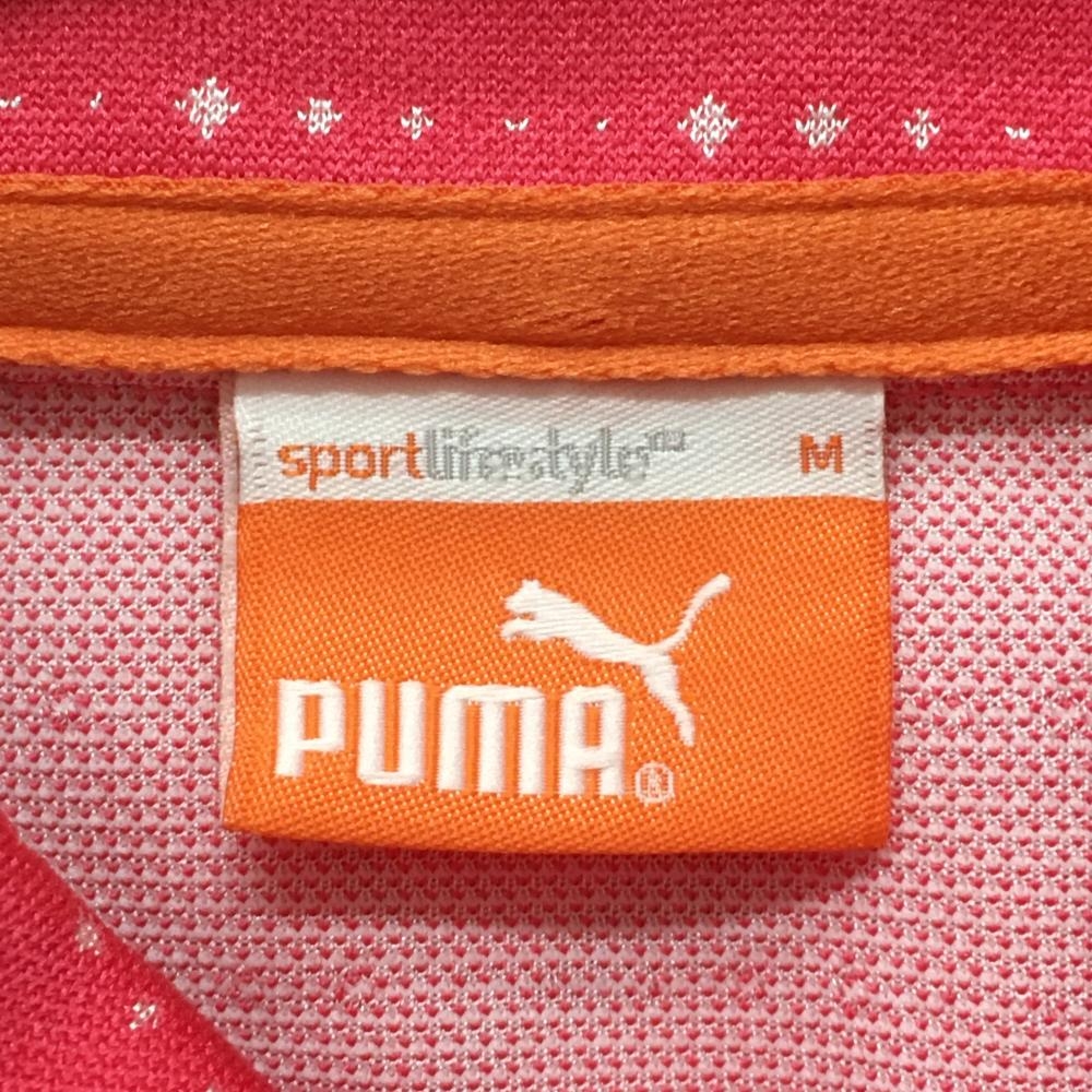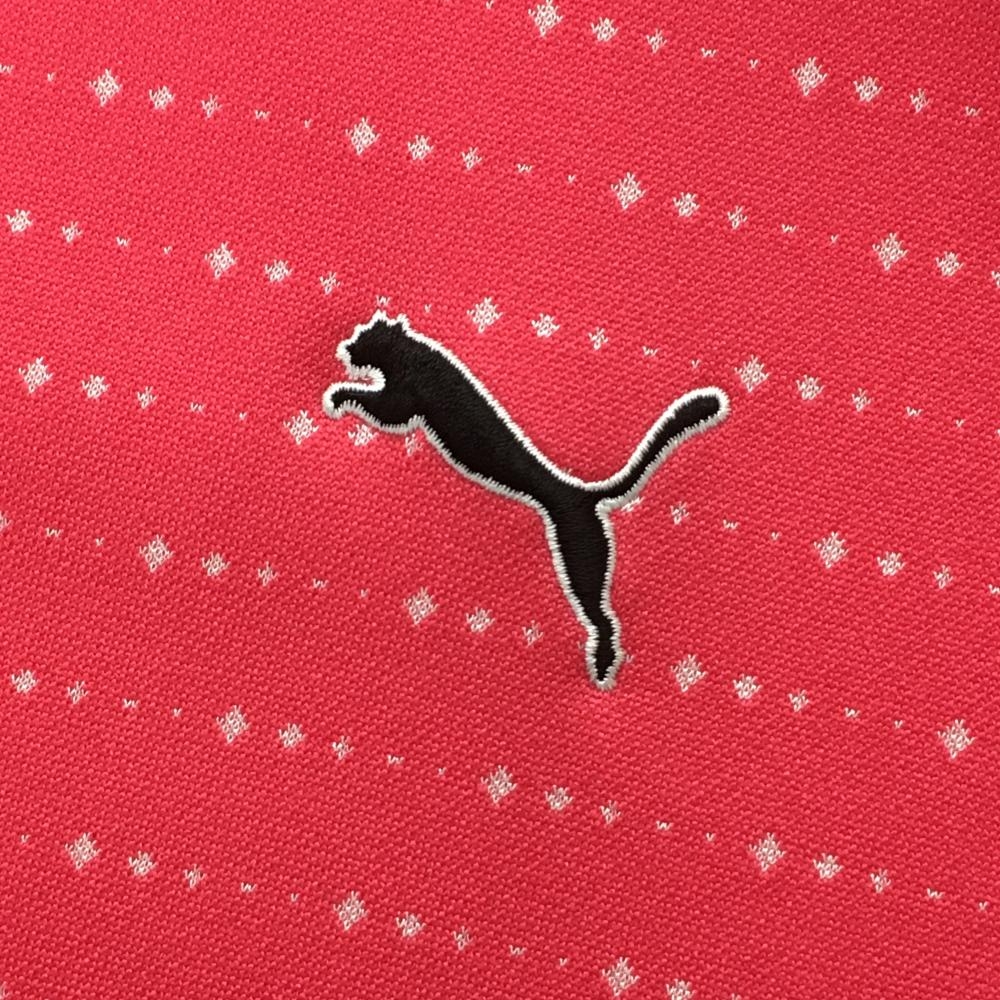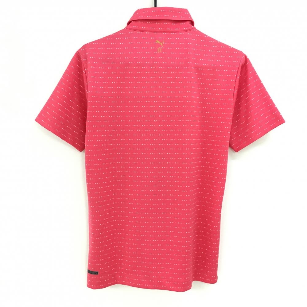 【超美品】プーマ 半袖ポロシャツ ピンク×白 ドット調 ロゴ刺しゅう ボタンダウン メンズ M ゴルフウェア PUMA