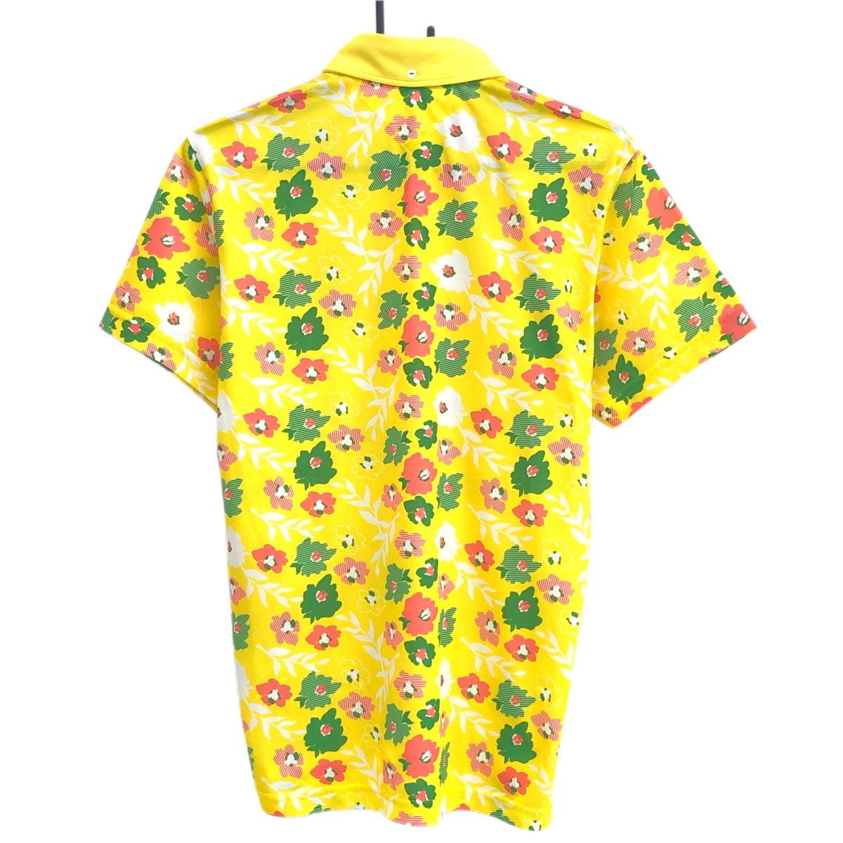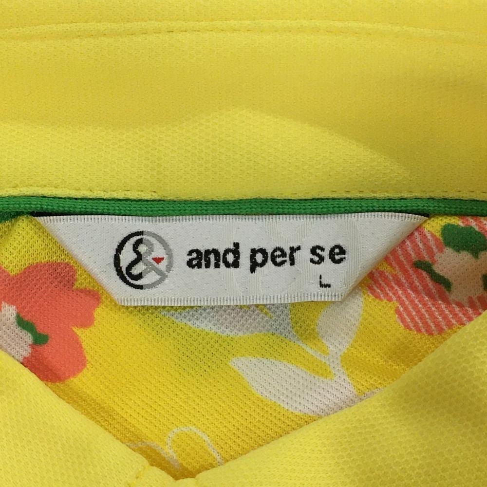 【超美品】アンパスィ 半袖ポロシャツ イエロー×グリーン 花柄 ボタンダウン メンズ L ゴルフウェア and per se