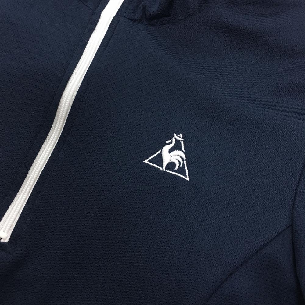 【超美品】ルコック 半袖ハイネックシャツ ネイビー ロゴ白 ハーフジップ レディース M ゴルフウェア le coq sportif