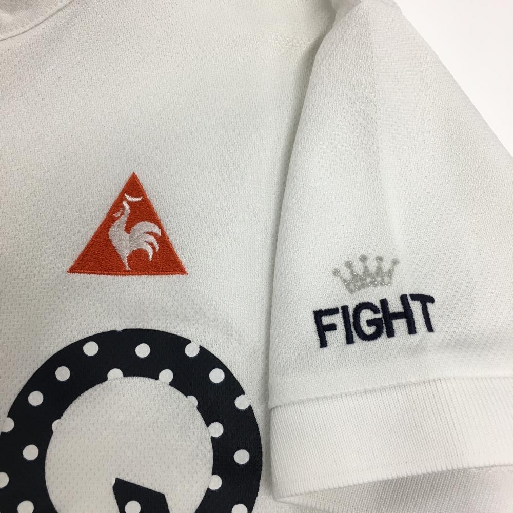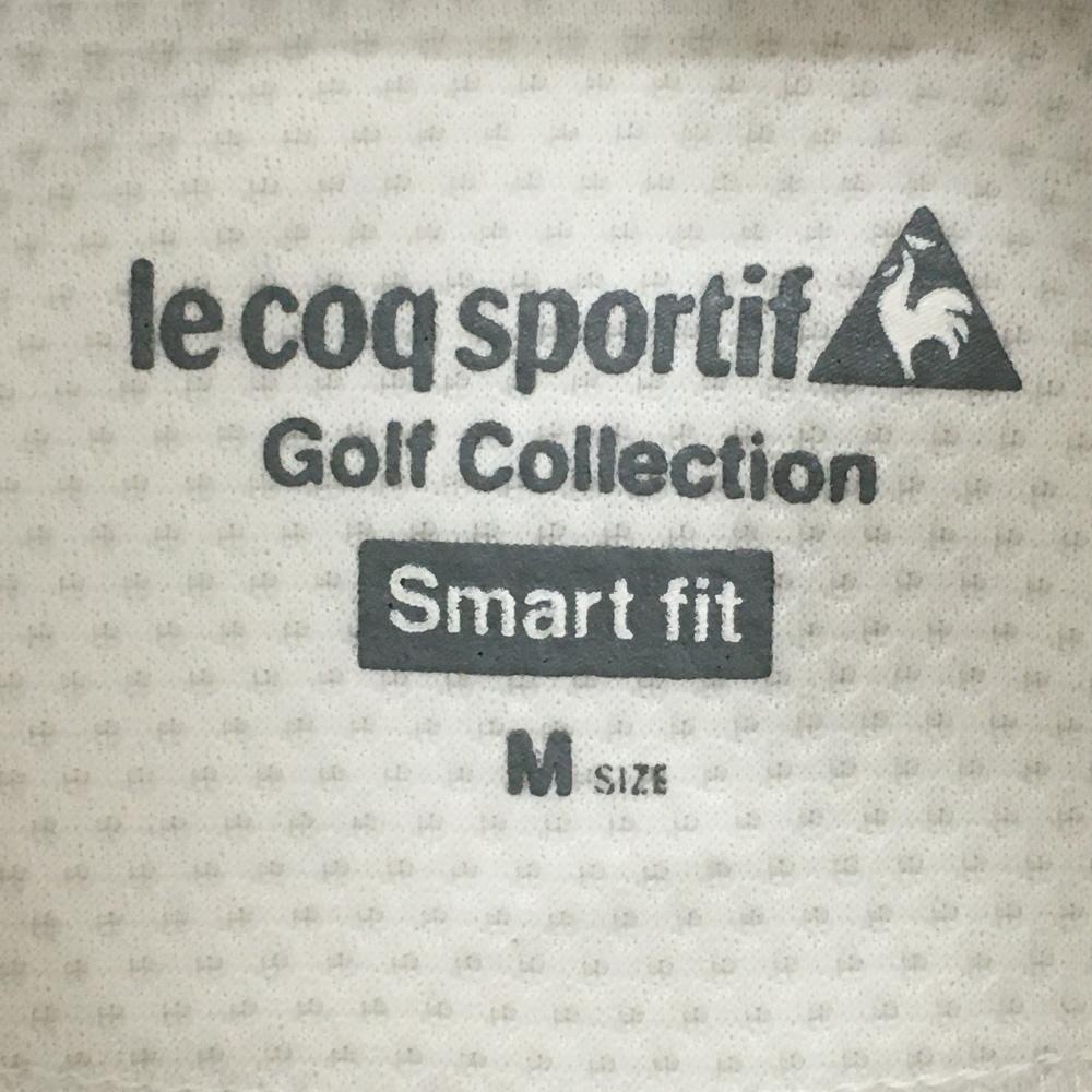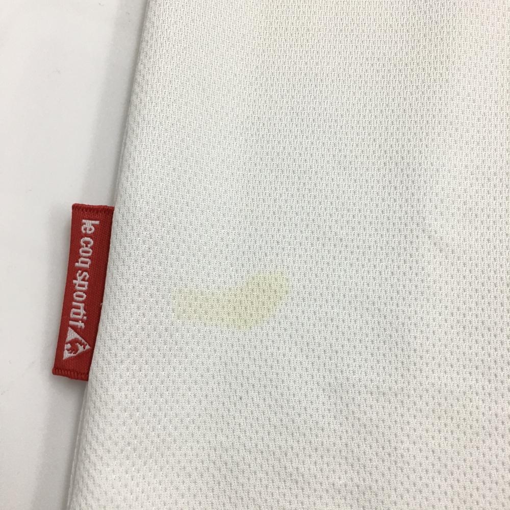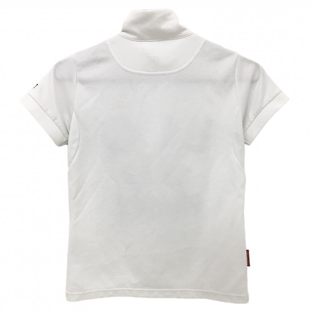 【美品】ルコックゴルフ 半袖ハイネックシャツ 白×ネイビー ロゴドット ハーフジップ レディース M ゴルフウェア le coq sportif