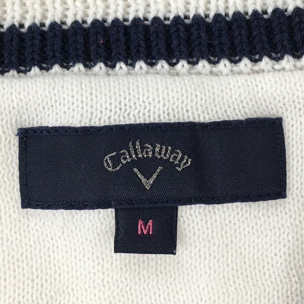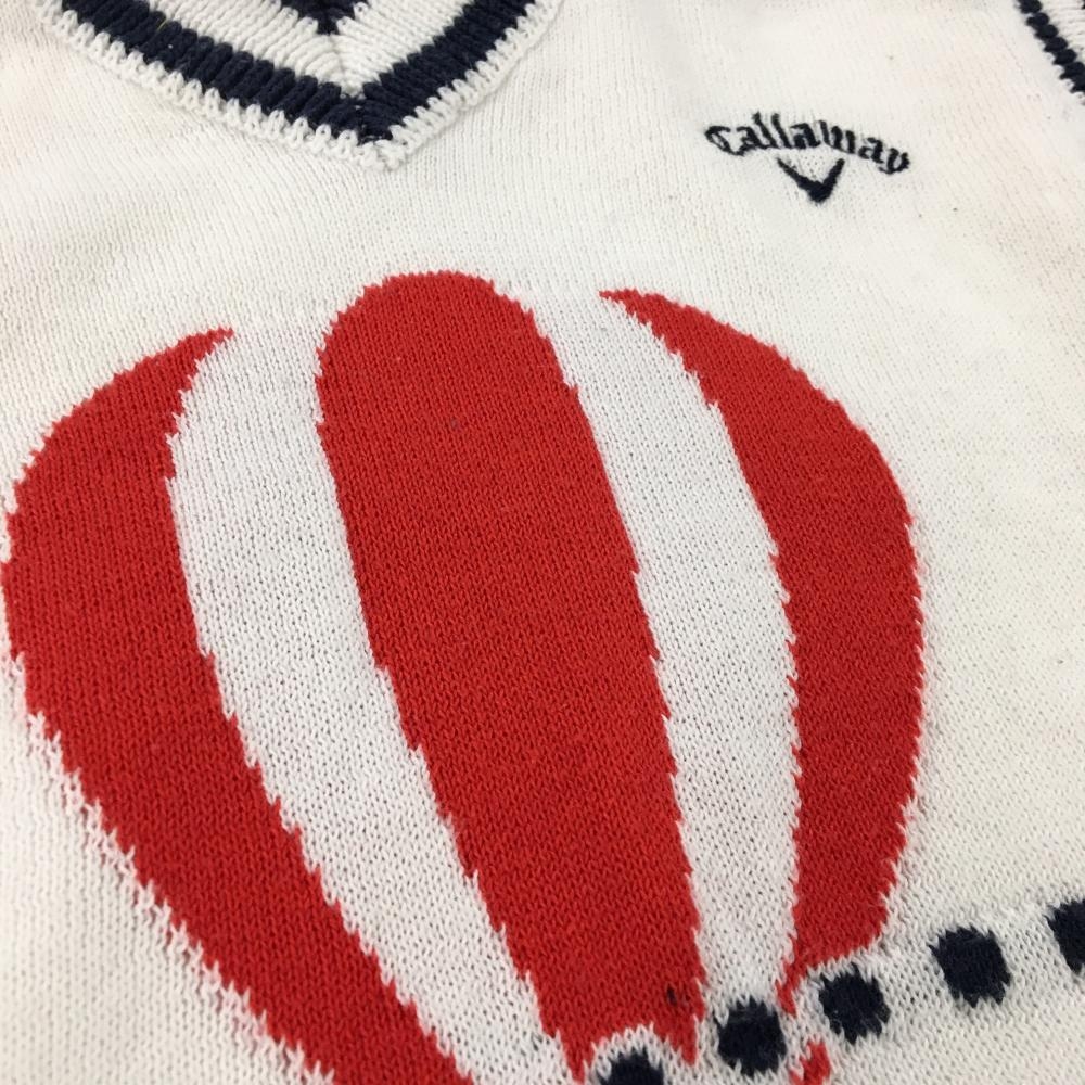 キャロウェイ ニットベスト 白×ネイビー 気球 コットン混 レディース M ゴルフウェア Callaway