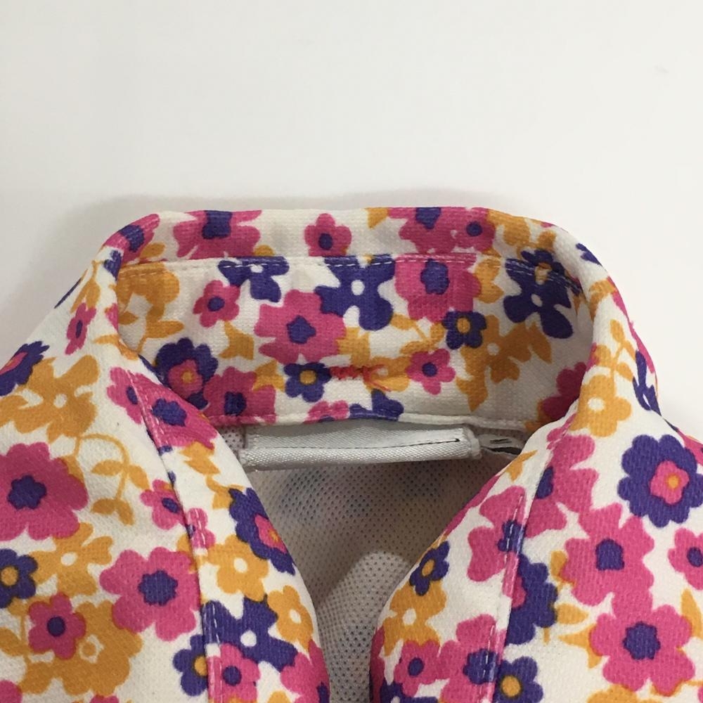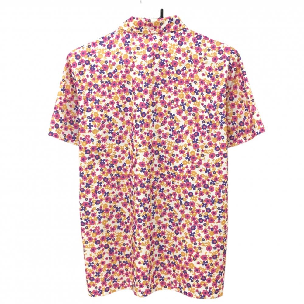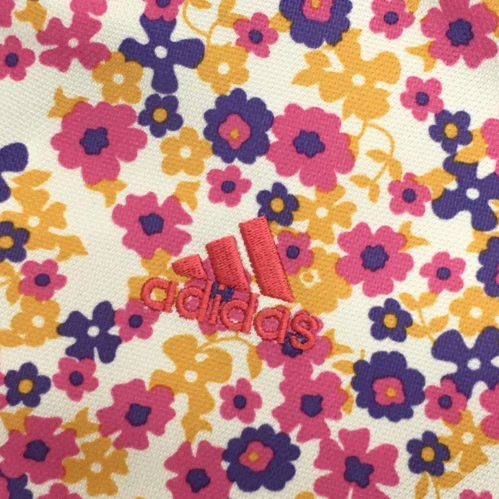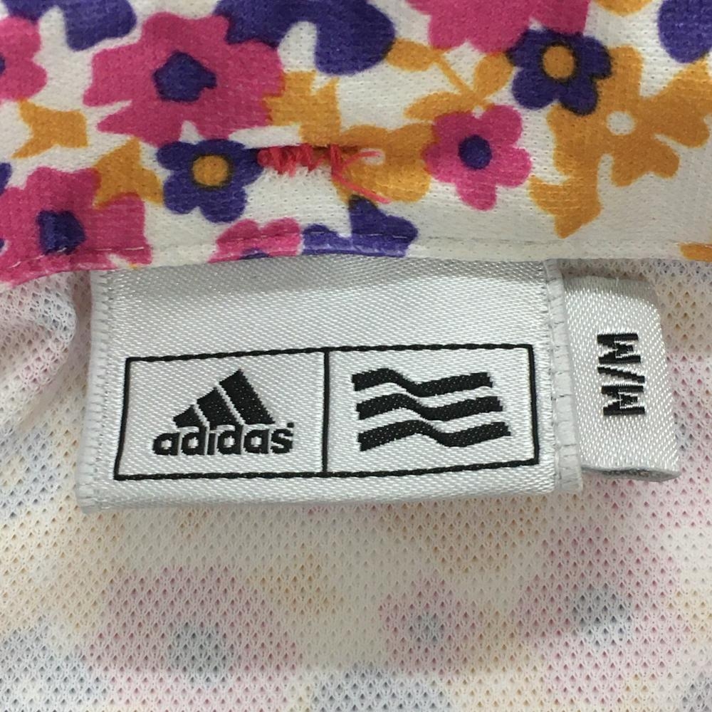 【美品】アディダス 半袖ポロシャツ 白×ピンク 花柄 ロゴ刺しゅう メンズ M/M ゴルフウェア adidas