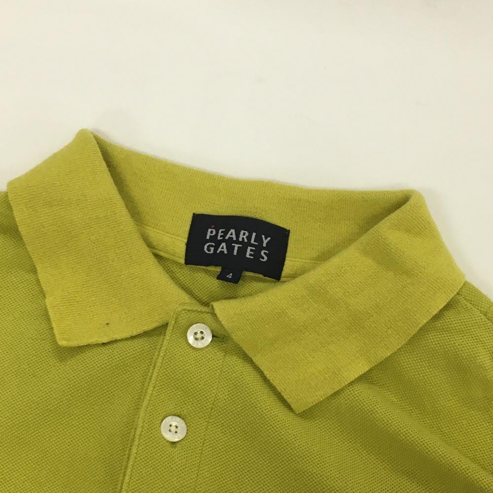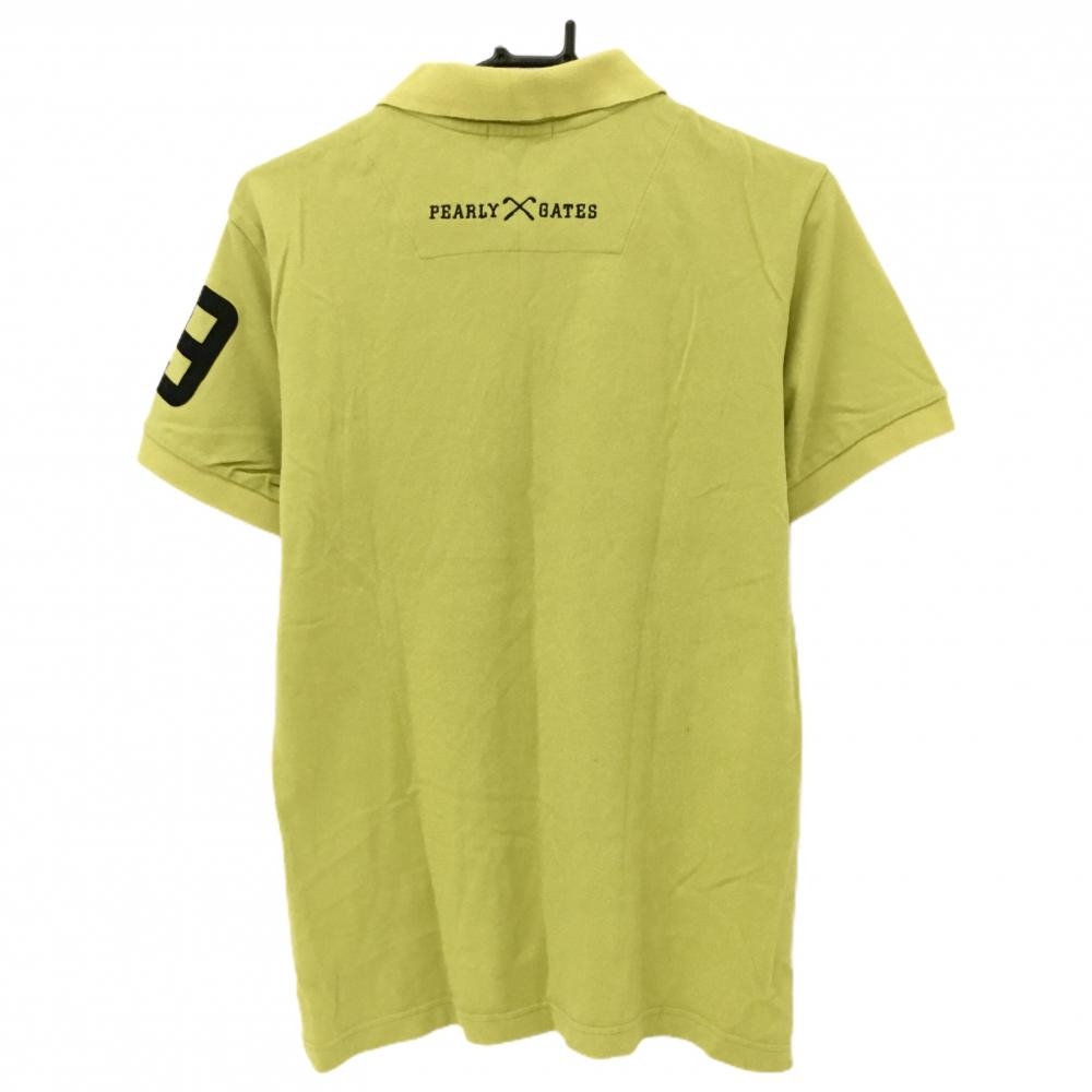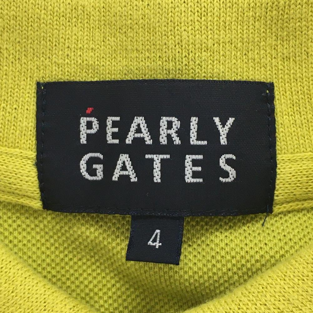 【美品】パーリーゲイツ 半袖ポロシャツ ライムグリーン×黒 襟裏ボーダー 胸ロゴ メンズ 4(M) ゴルフウェア PEARLY GATES