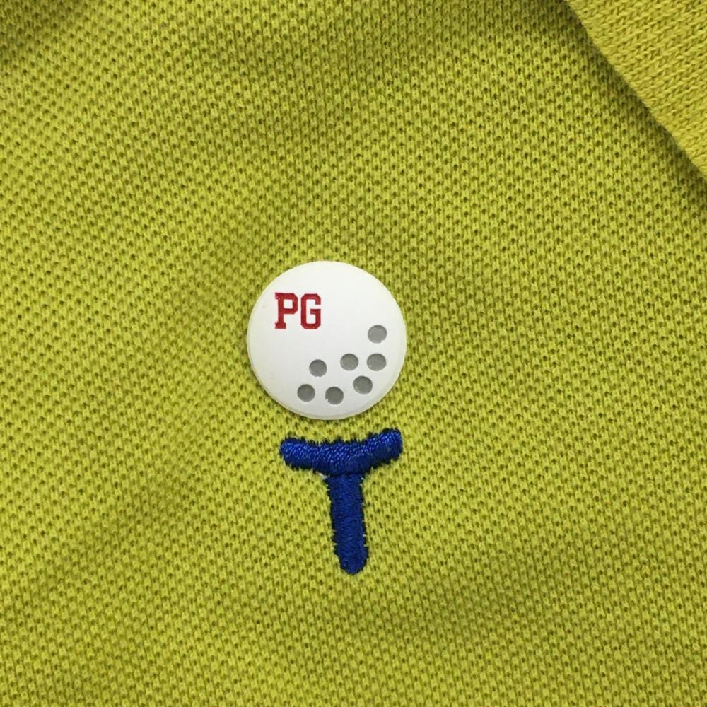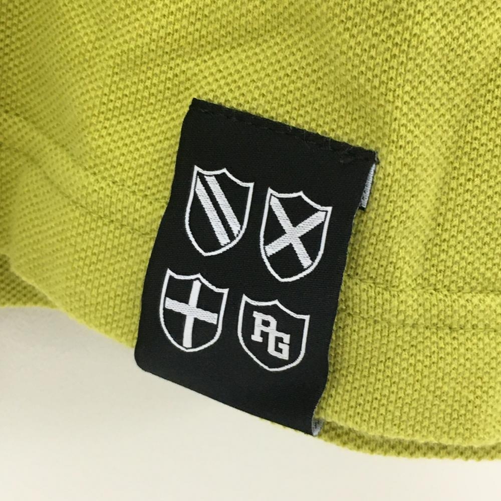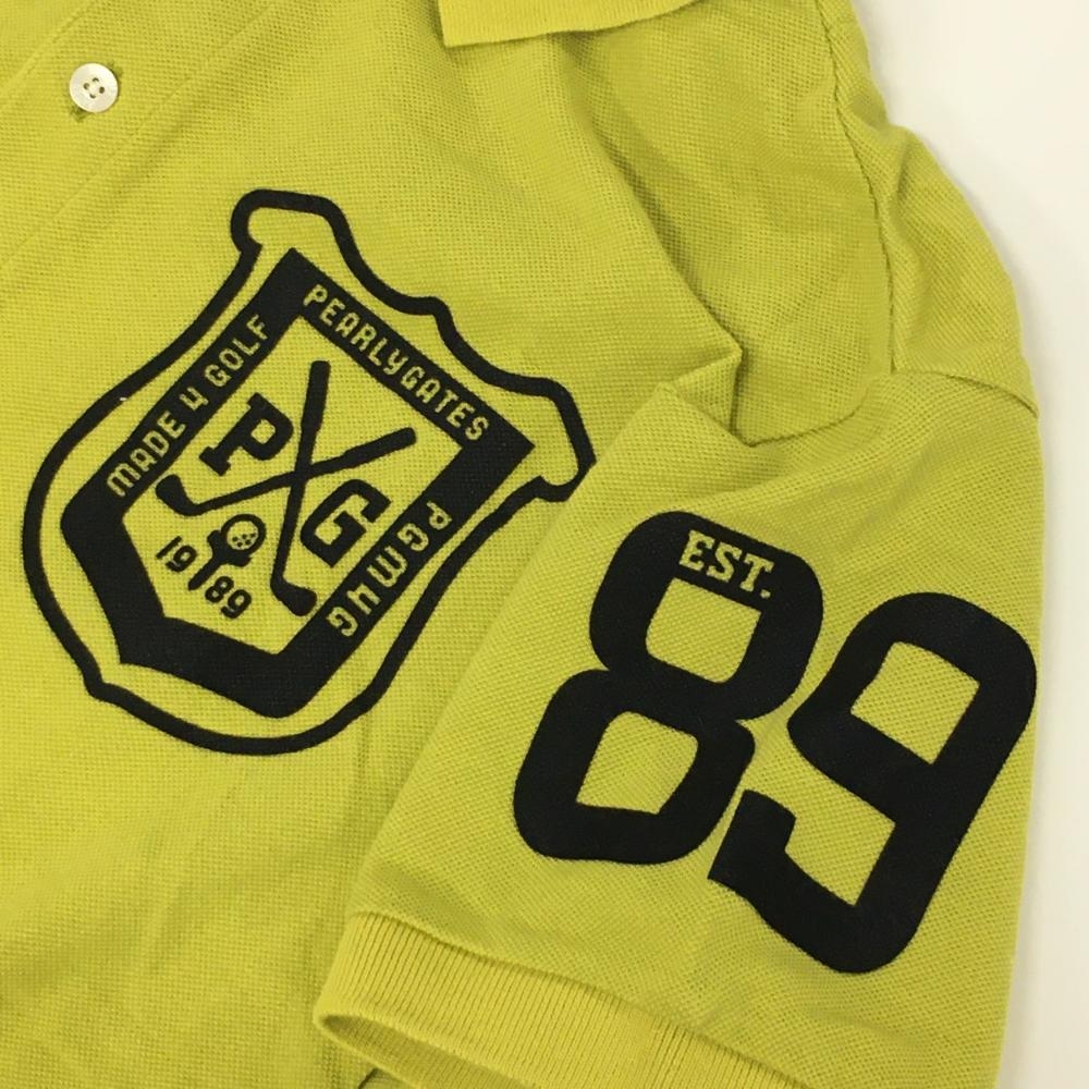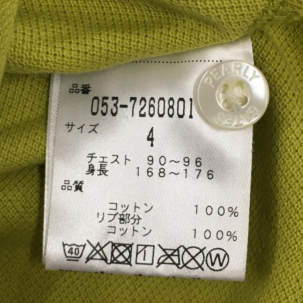 【美品】パーリーゲイツ 半袖ポロシャツ ライムグリーン×黒 襟裏ボーダー 胸ロゴ メンズ 4(M) ゴルフウェア PEARLY GATES