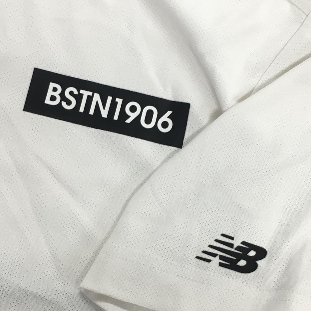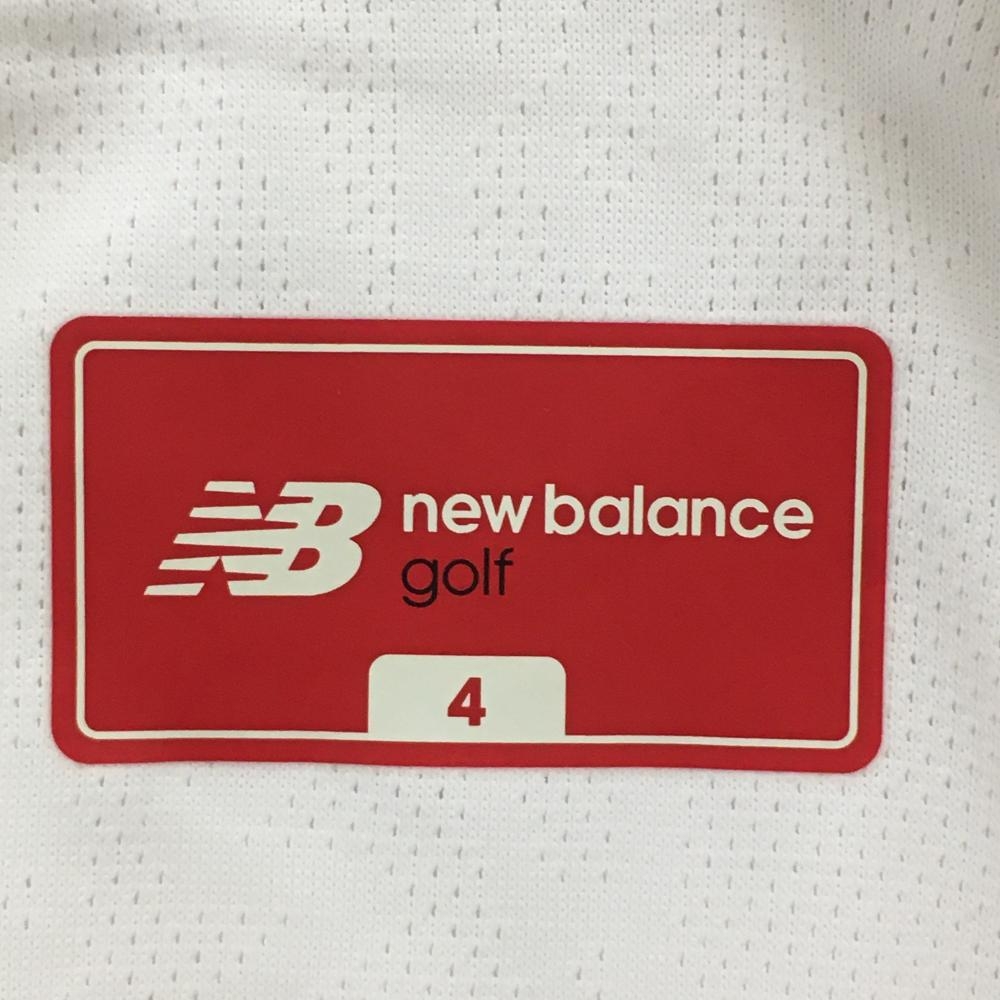 【美品】ニューバランスゴルフ 半袖ポロシャツ 白 ロゴ黒 地模様 メンズ 4(M) ゴルフウェア New Balance