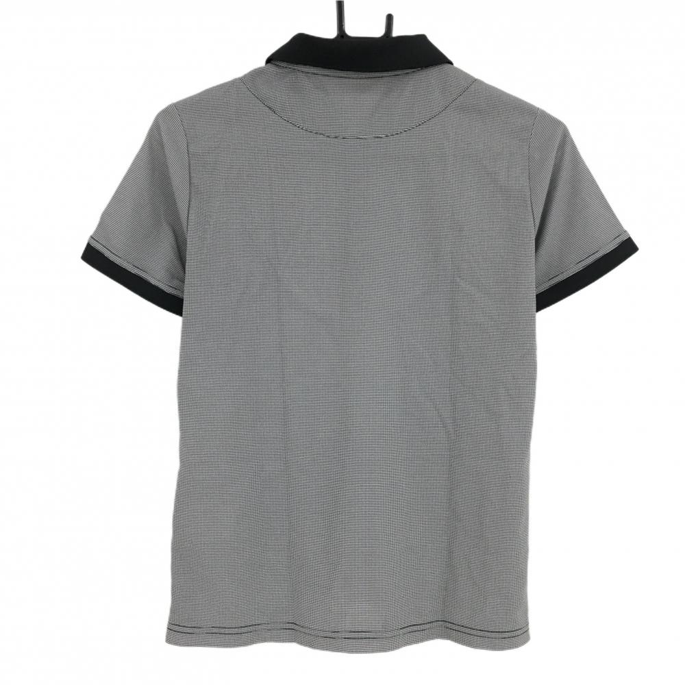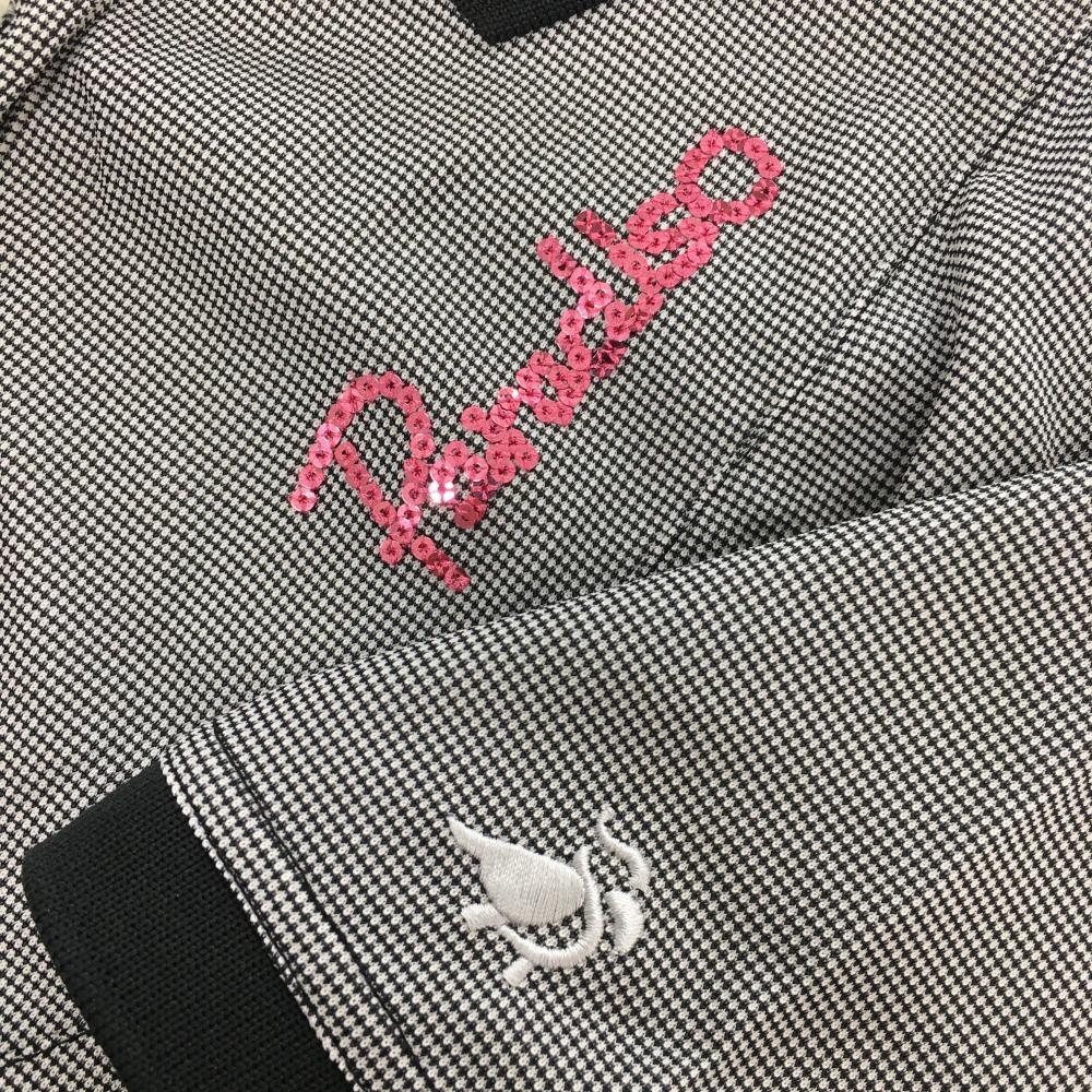 【超美品】パラディーゾ 半袖ポロシャツ 黒×白 細目チェック調 スパンコールロゴ レディース ゴルフウェア Paradiso
