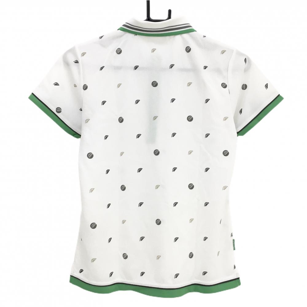 【美品】パラディーゾ 半袖ポロシャツ 白×黒×グリーン 総柄 レディース M ゴルフウェア Paradiso