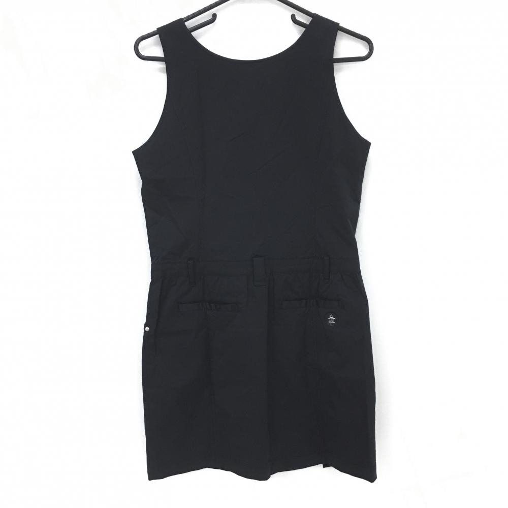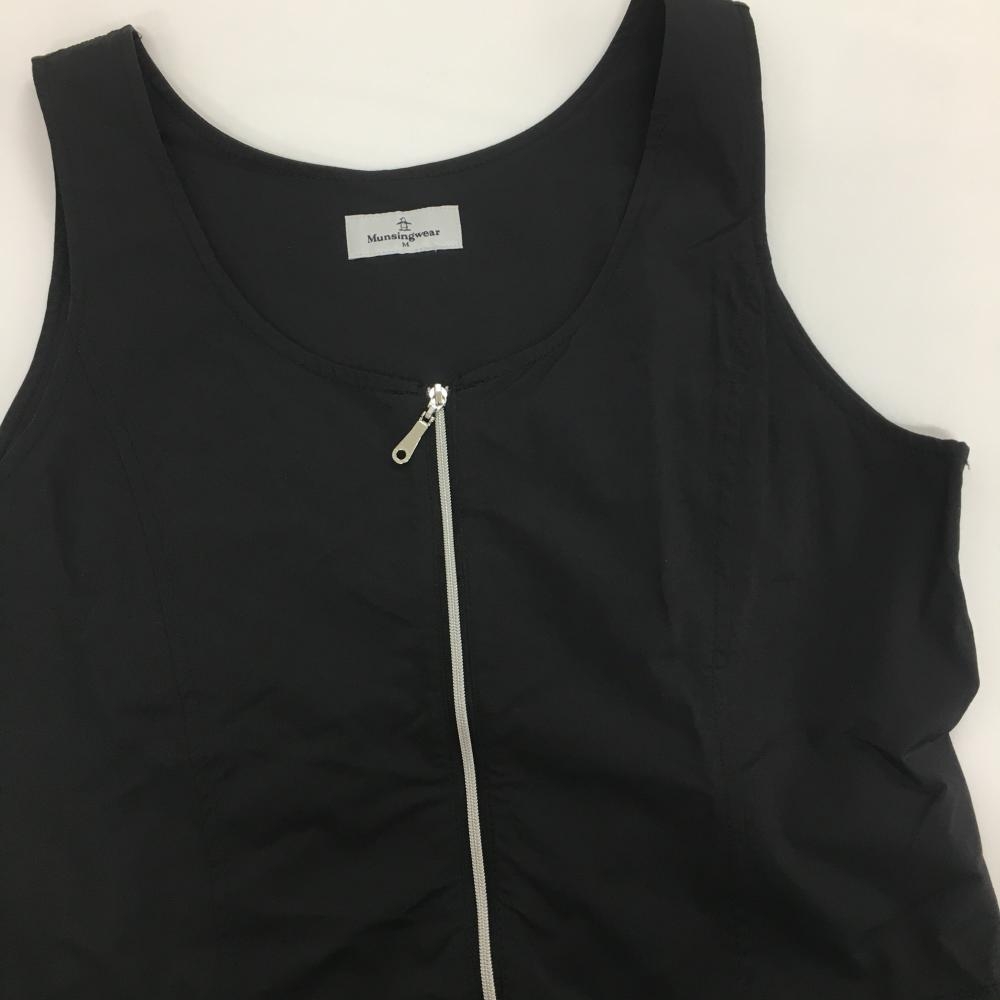 【美品】マンシングウェア ノースリーブワンピース 黒 ナイロン フロントジップ バックロゴ レディース M ゴルフウェア Munsingwear