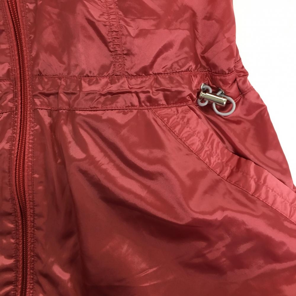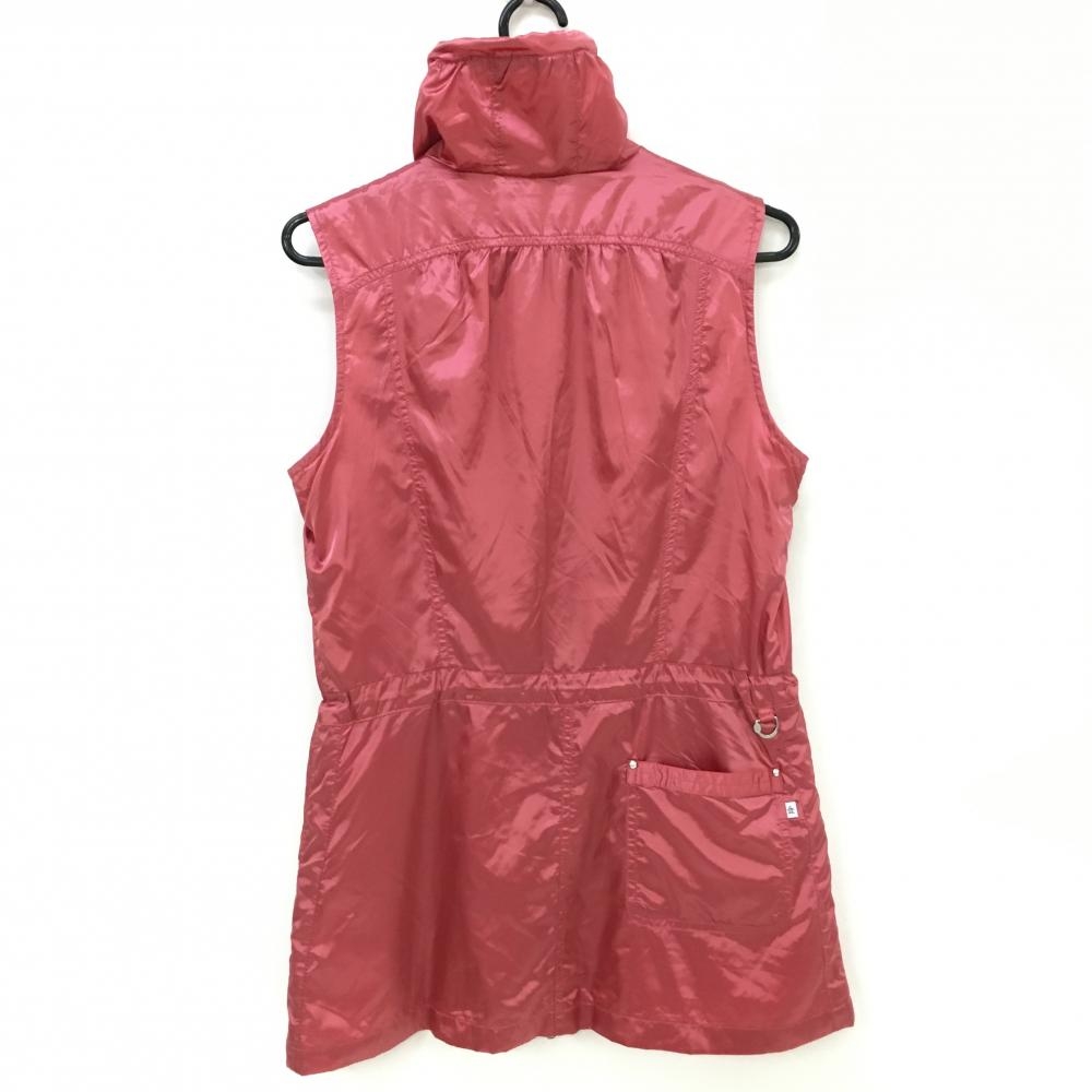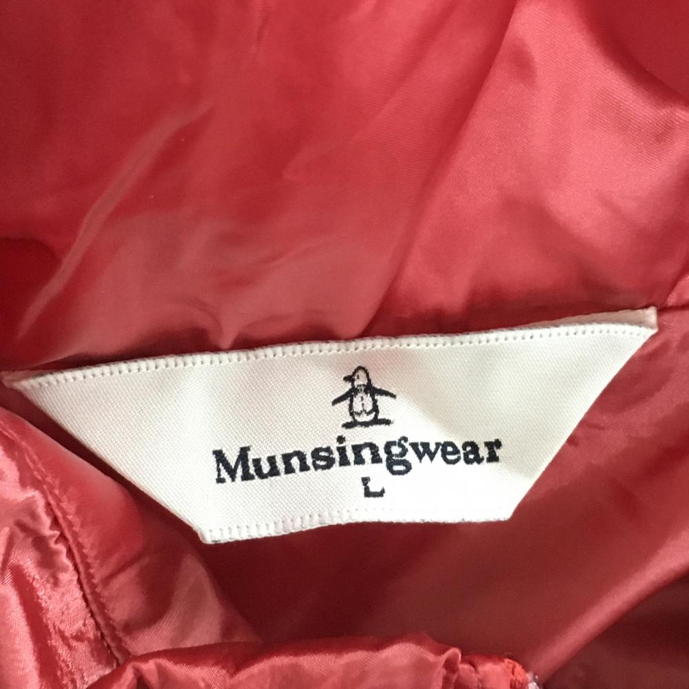 【美品】マンシングウェア ノースリーブワンピース レッドピンク 薄手 フルジップ ロゴワッペン レディース L ゴルフウェア Munsingwear