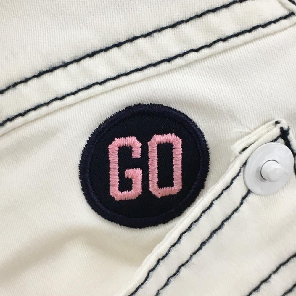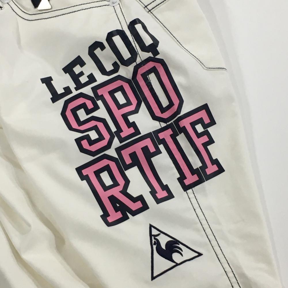 ルコック パンツ 白×ネイビー ステッチ ロゴプリント レディース 7 ゴルフウェア le coq sportif