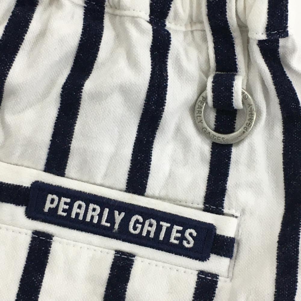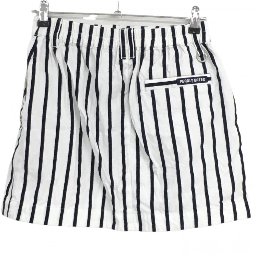 【美品】パーリーゲイツ スカート 白×ネイビー ストライプ コットン100% レディース 0 ゴルフウェア PEARLY GATES