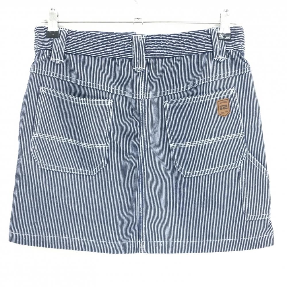 ロサーセン スカート ネイビー×白 ストライプ デニム調 後ろウエストゴム レディース 42(L) ゴルフウェア Rosasen