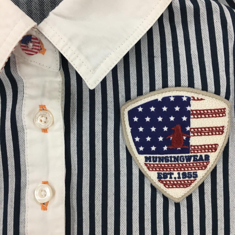 マンシングウェア 半袖ポロシャツ ライトグレー×ネイビー ストライプ レディース M ゴルフウェア Munsingwear