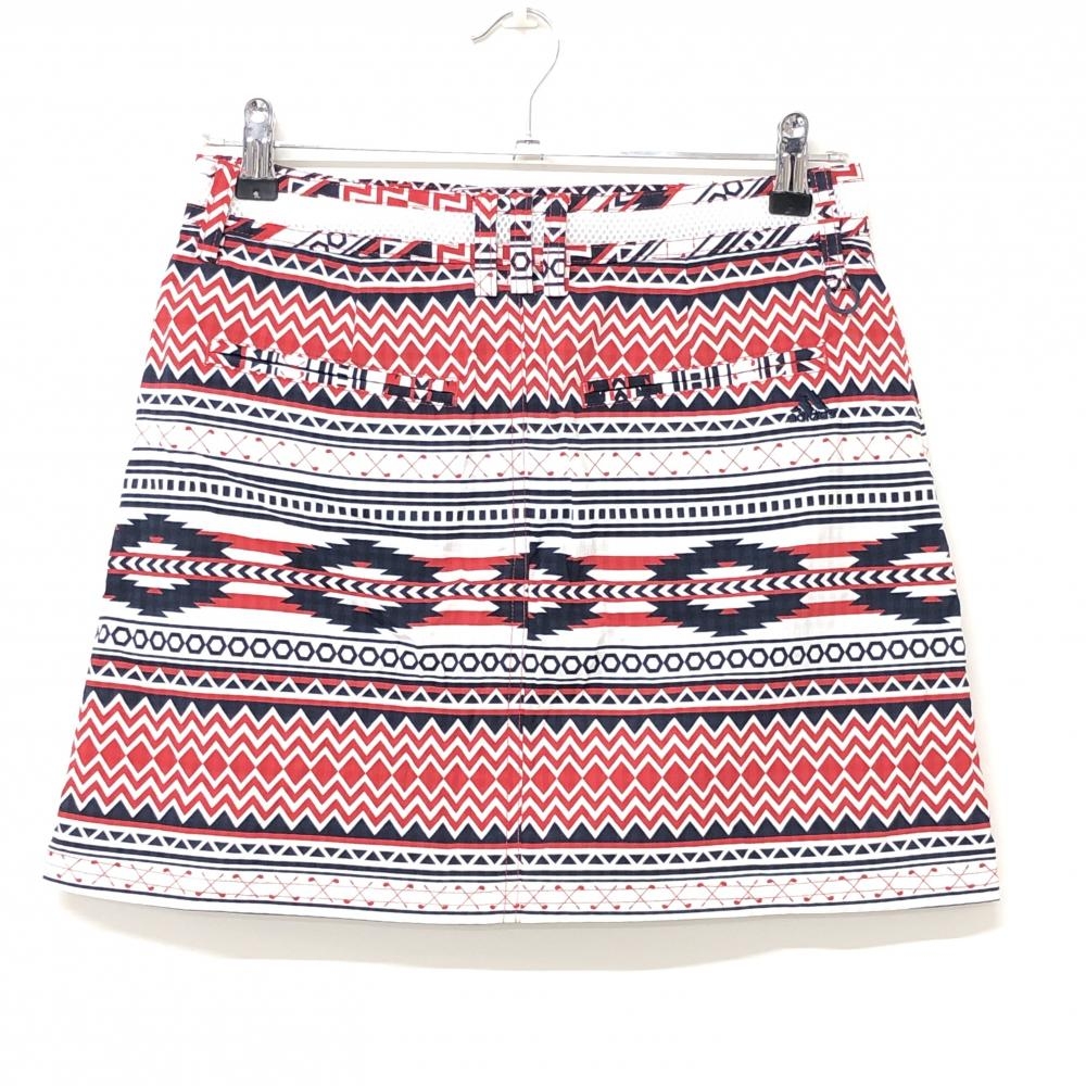 【超美品】アディダス スカート レッド×ネイビー 総柄 織生地 レディース M/M ゴルフウェア adidas