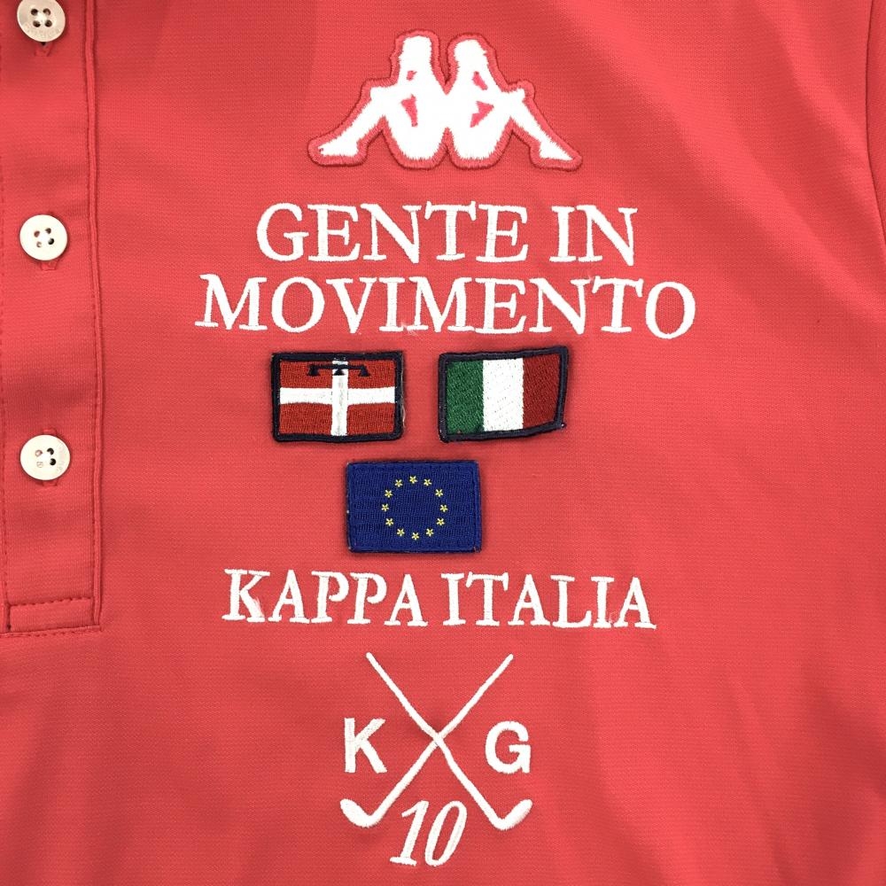 【美品】カッパ 半袖ポロシャツ ピンク×白 胸元ロゴ メンズ LL ゴルフウェア Kappa