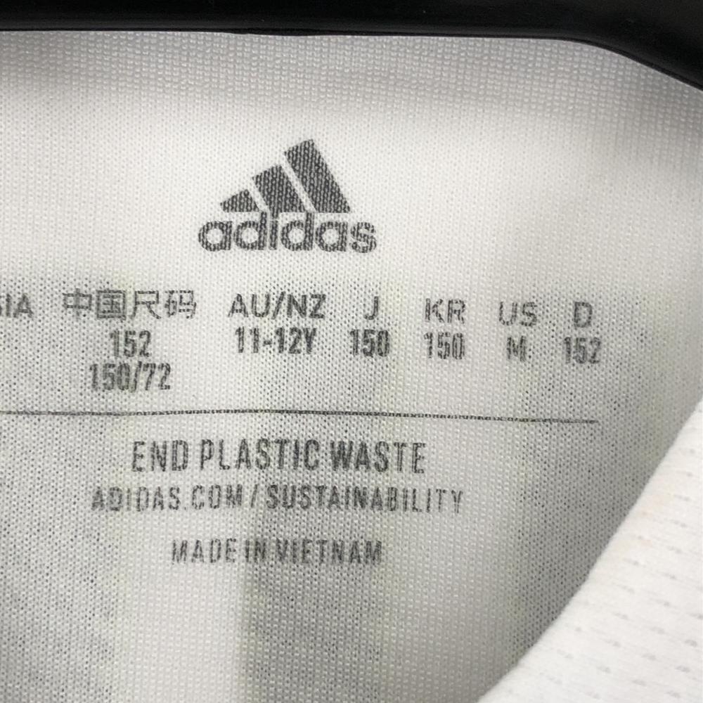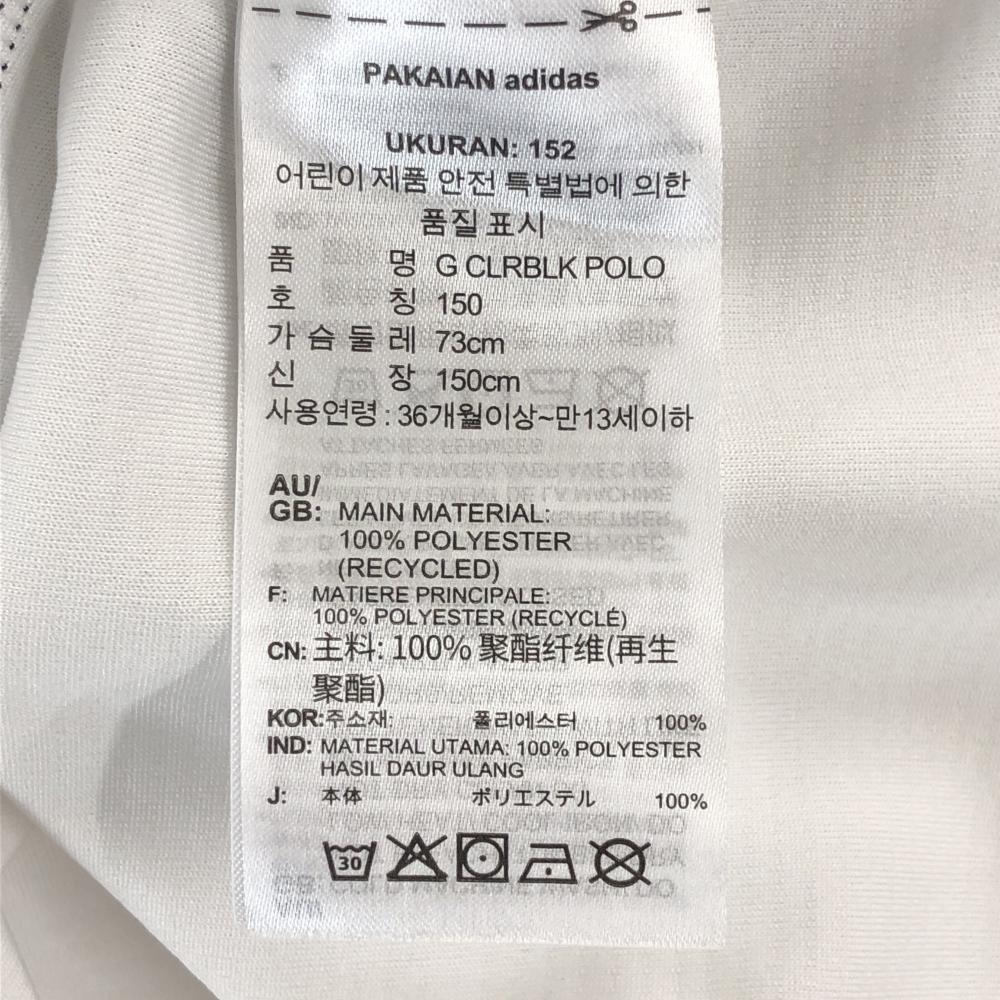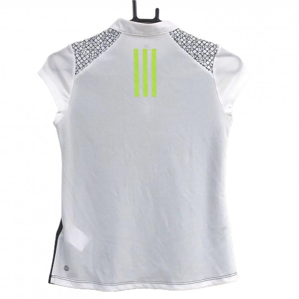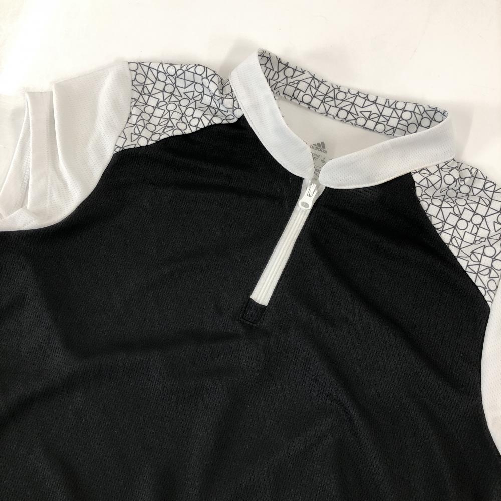 【美品】アディダス 半袖ポロシャツ 黒×白 スタンドカラー ハーフジップ レディース 150 ゴルフウェア adidas