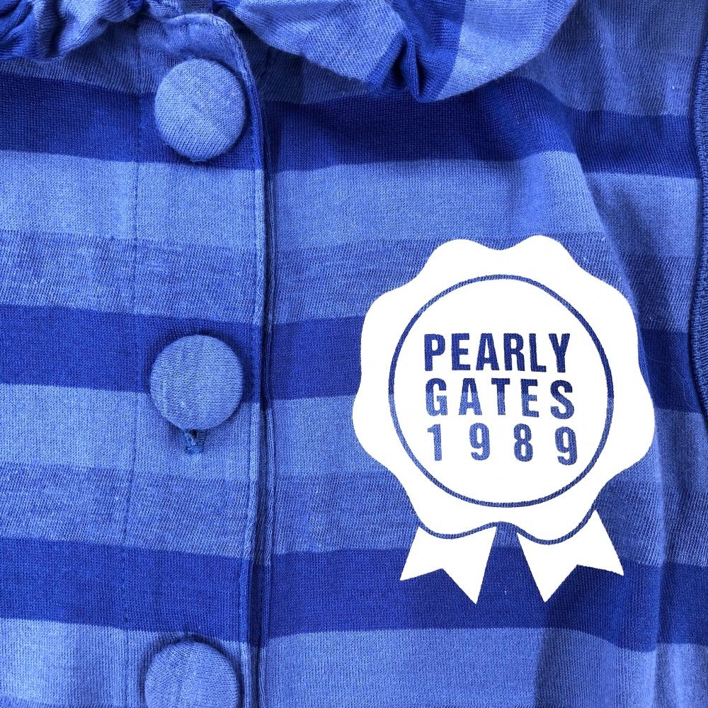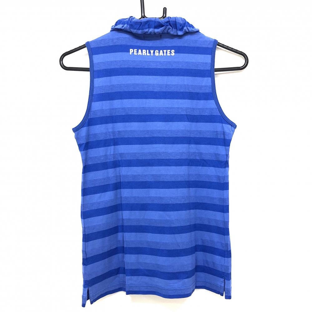 【美品】パーリーゲイツ ノースリーブポロシャツ ブルー ボーダー レディース 0(S) ゴルフウェア PEARLY GATES