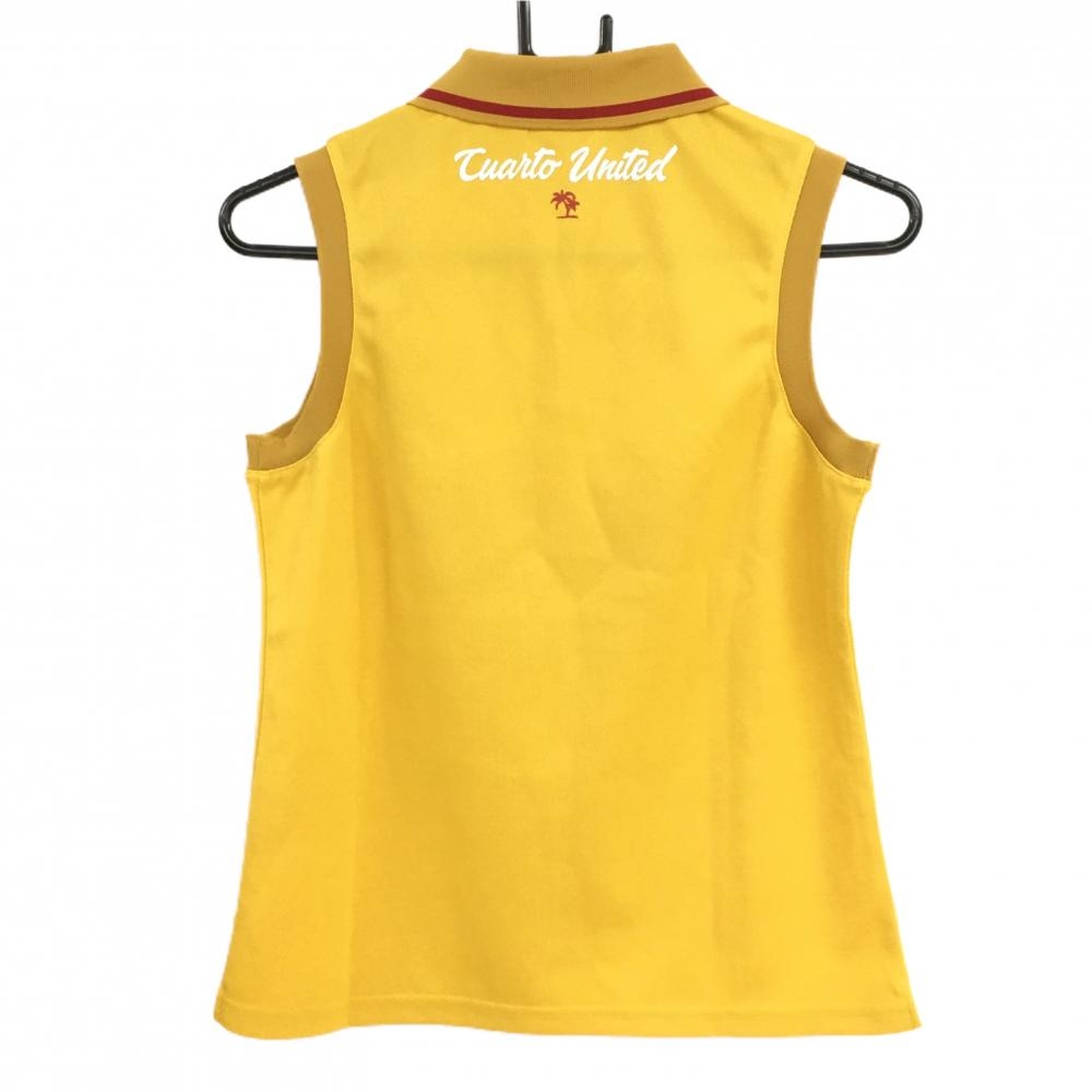 【超美品】クアルトユナイテッド ノースリーブポロシャツ マスタードイエロー×レッド メガネ レディース M ゴルフウェア CUARTO UNITED
