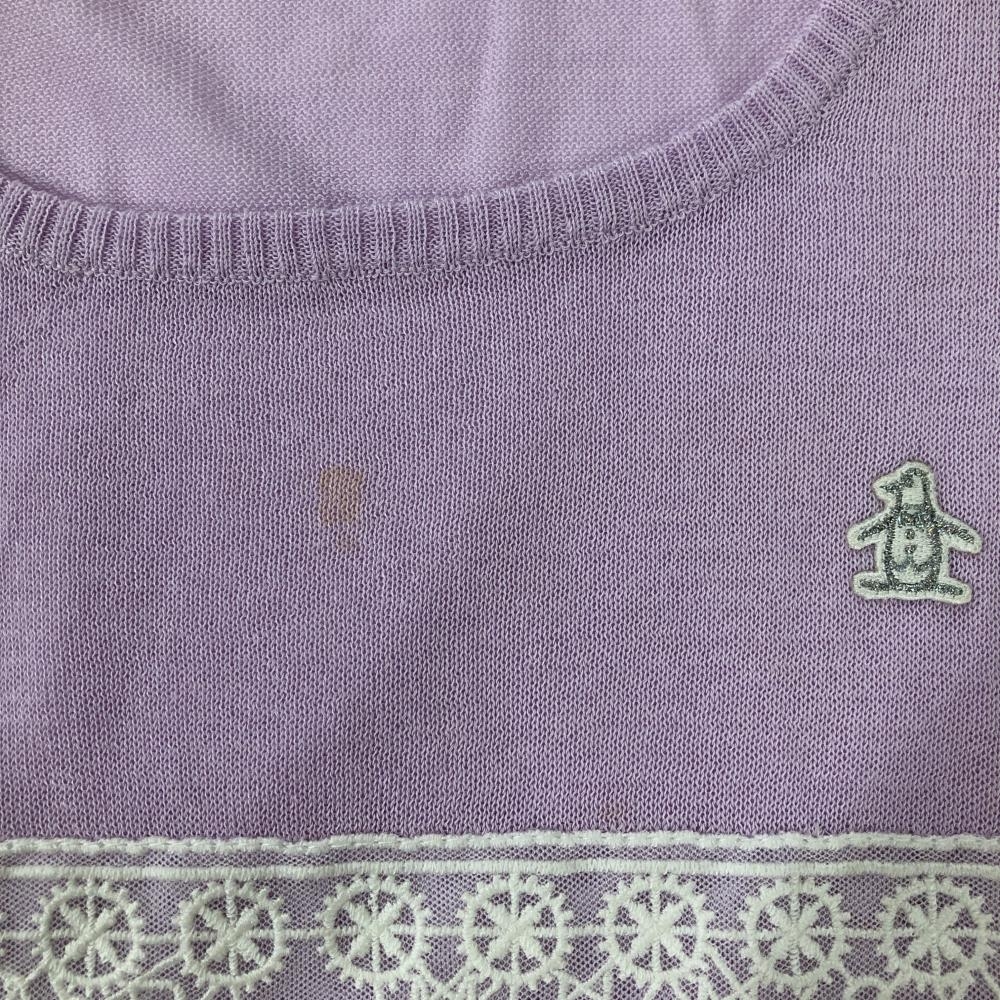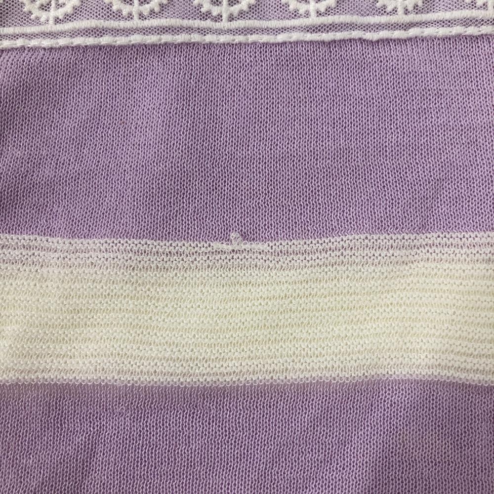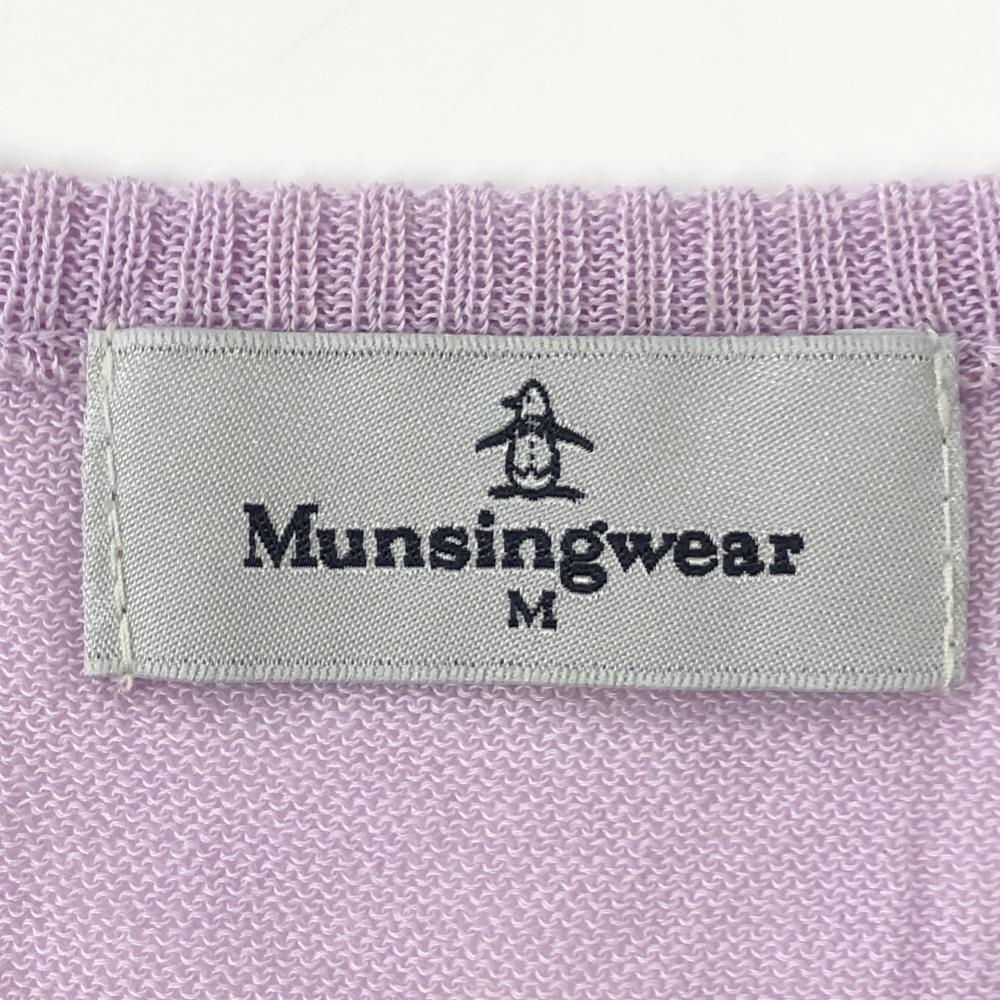 マンシングウェア ニットベスト ライトパープル×白 一部ボーダー ロゴワッペン レディース M ゴルフウェア Munsingwear