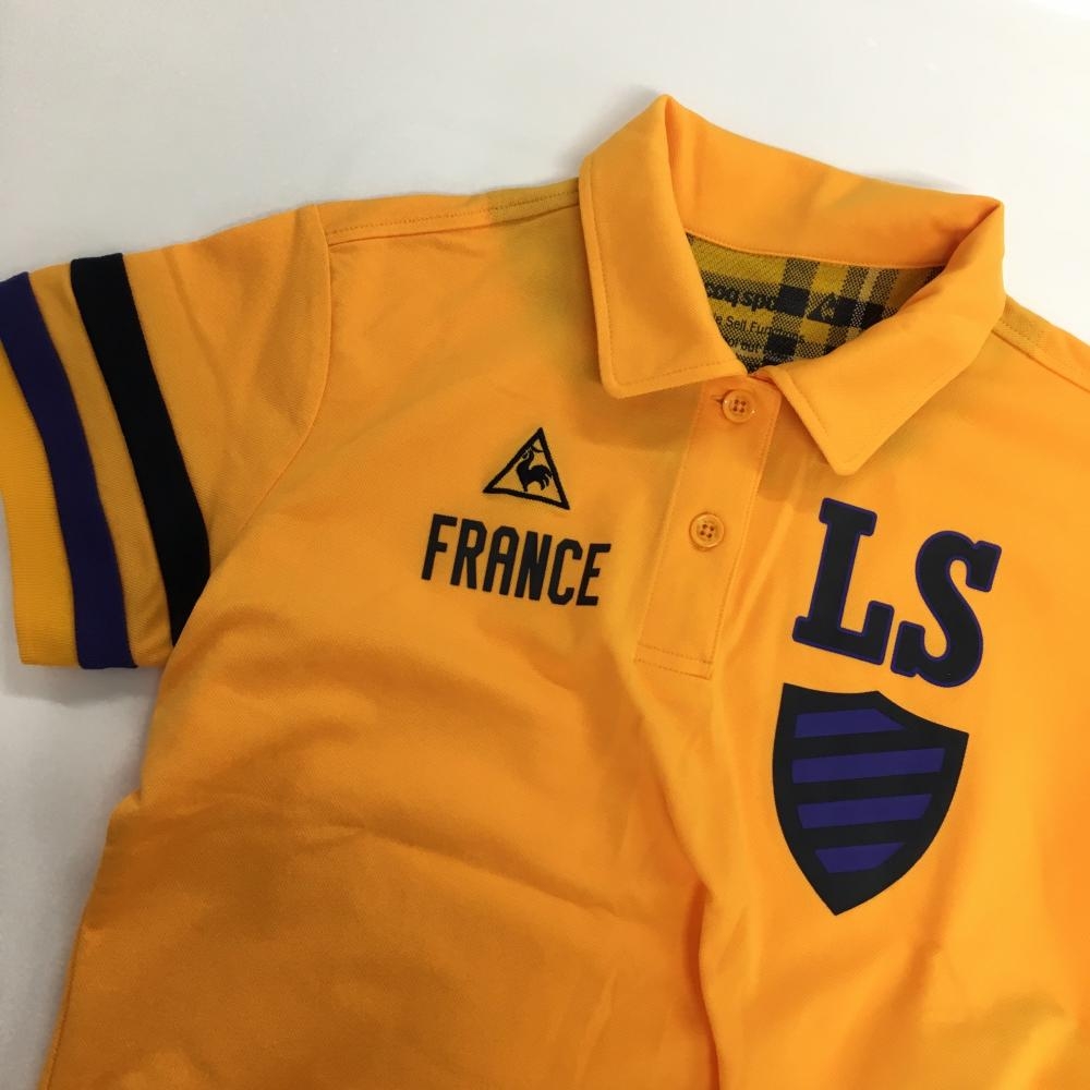 【超美品】ルコックゴルフ 半袖ポロシャツ オレンジ×ネイビー 袖2ライン レディース M ゴルフウェア le coq sportif