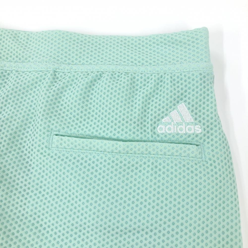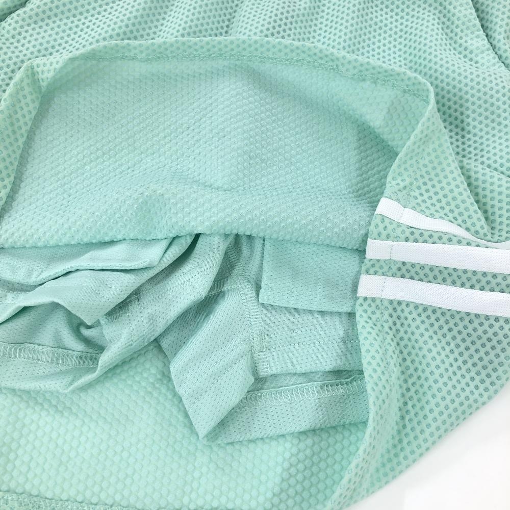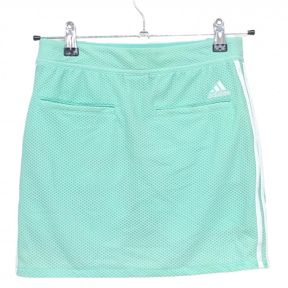 【超美品】アディダス ストレッチスカート ライトグリーン 織生地 3ライン白 内側インナーパンツ レディース S ゴルフウェア adidas