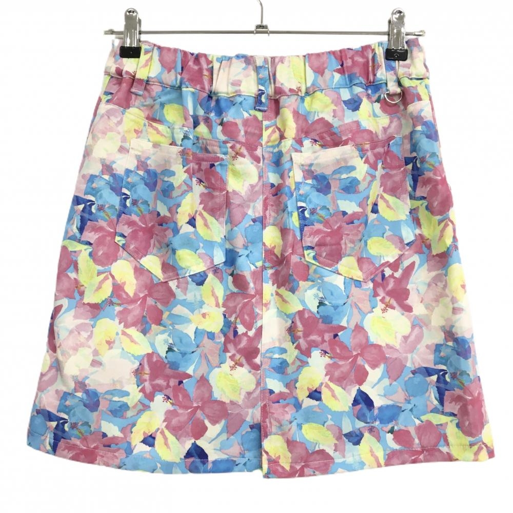 【美品】キスオンザグリーン スカート ピンク×ライトブルー ハイビスカス柄 花柄 レディース 2(M) ゴルフウェア kiss on the green