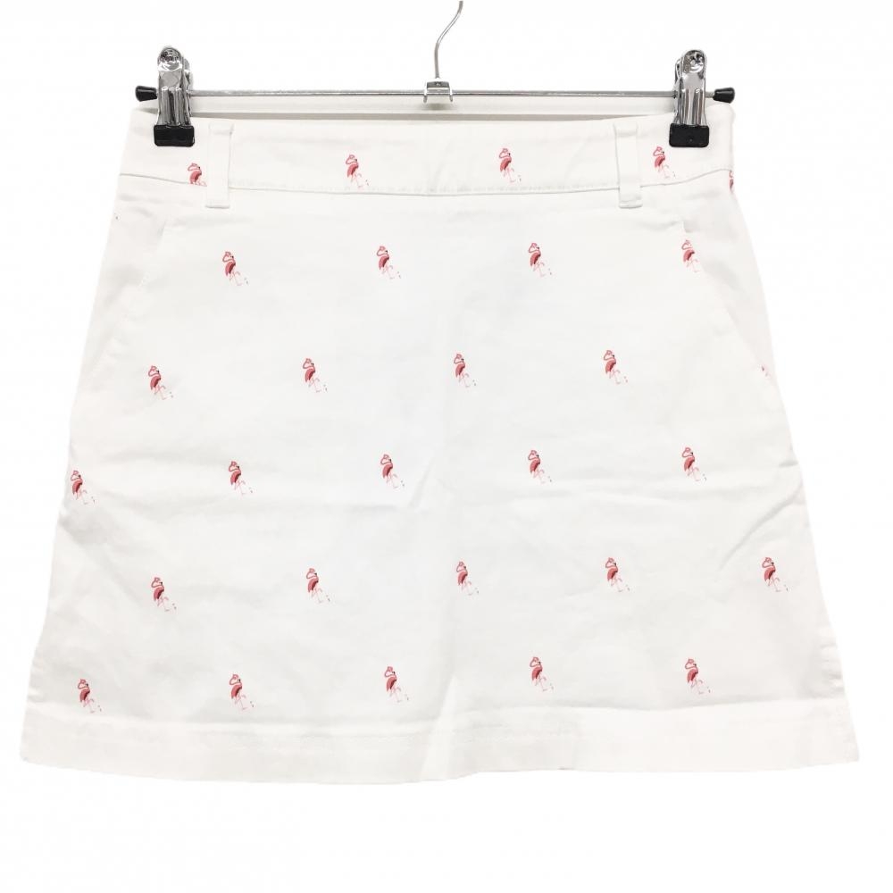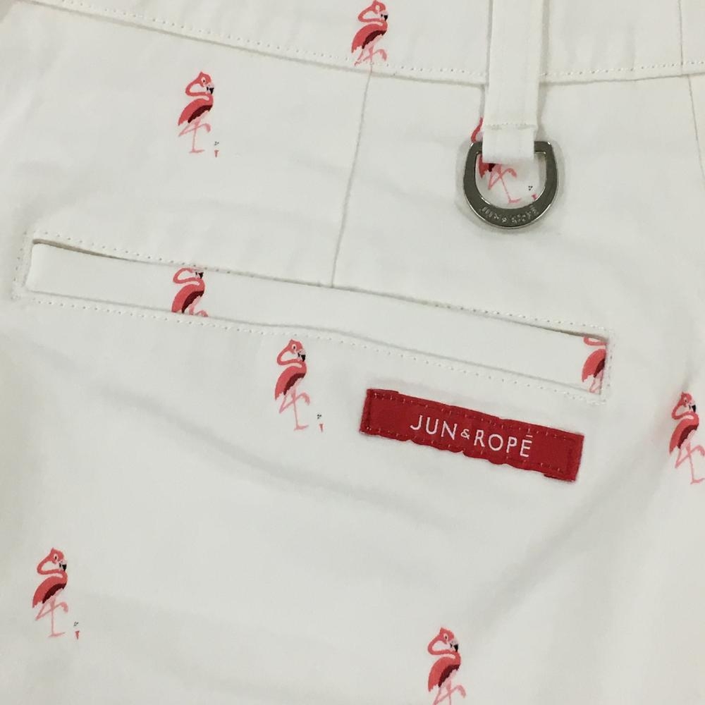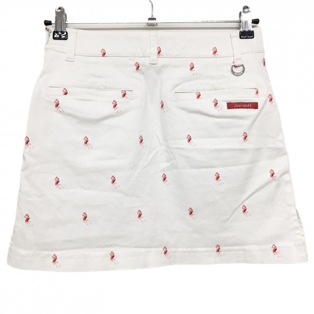 ジュンアンドロペ スカート 白×ピンク フラミンゴ柄 レディース M ゴルフウェア JUN&ROPE