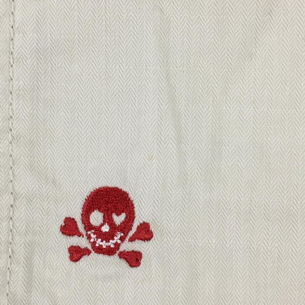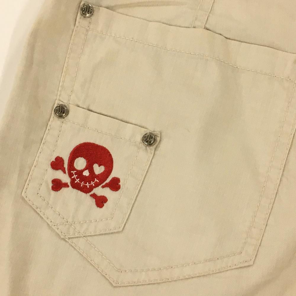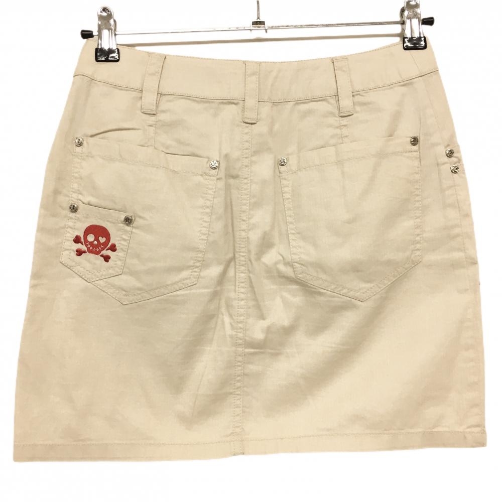 ダンスウィズドラゴン スカート ベージュ×レッド スカル ドット刺しゅう レディース 1(S) ゴルフウェア Dance With Dragon