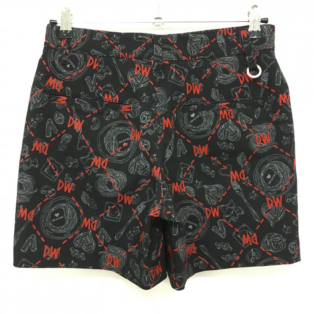ダンスウィズドラゴン キュロットスカート 黒×レッド 総柄 レディース 2(M) ゴルフウェア Dance With Dragon