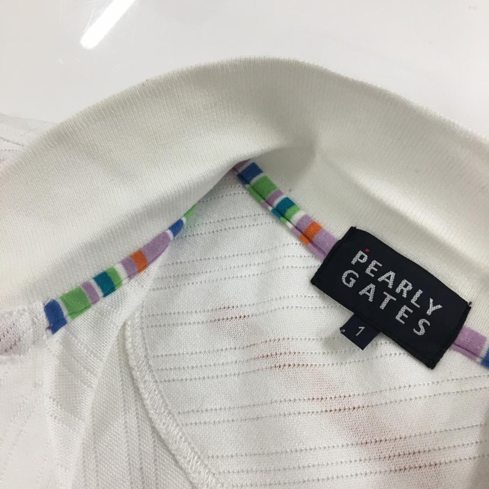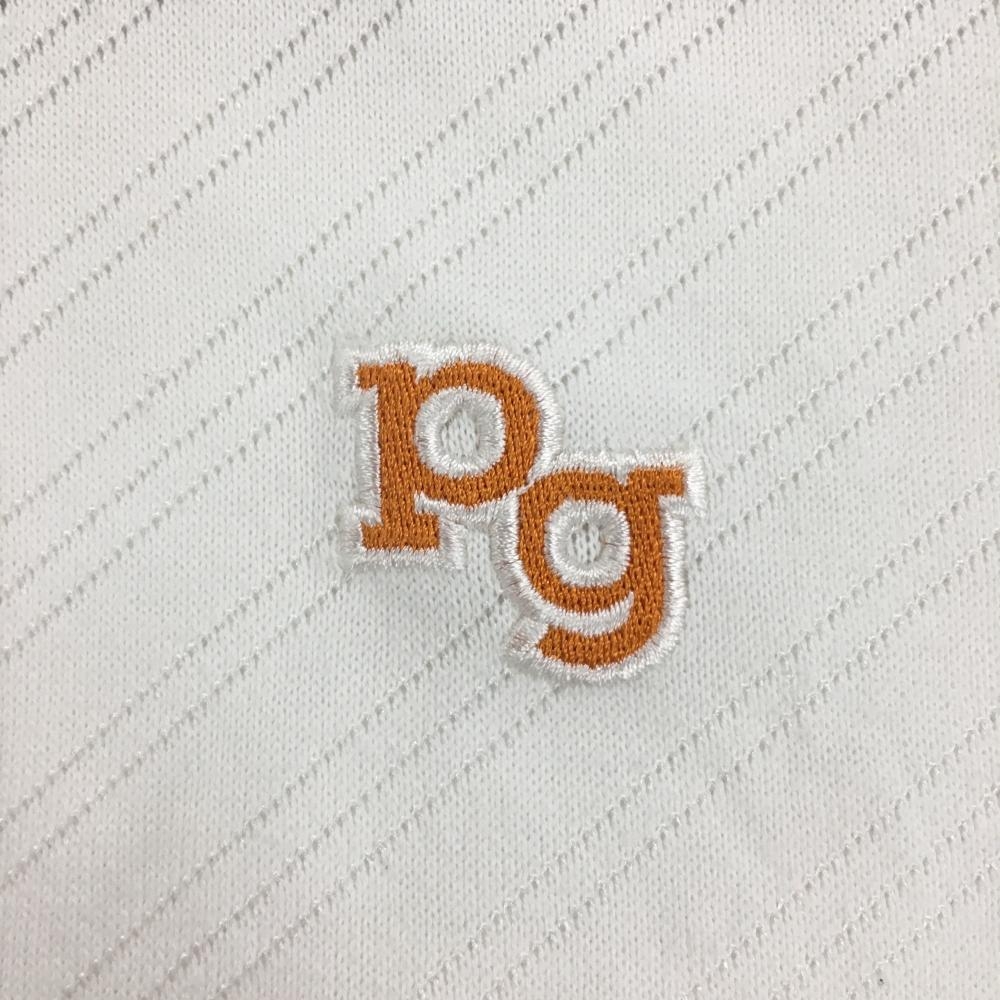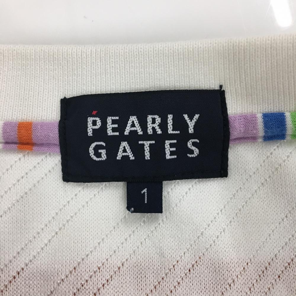 パーリーゲイツ 半袖ポロシャツ 白×オレンジ 斜めストライプ織生地 レディース 1(M) ゴルフウェア PEARLY GATES