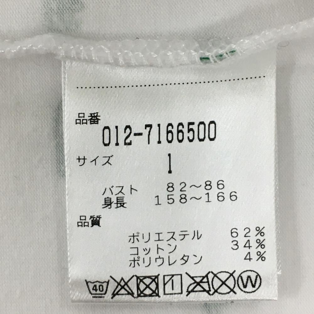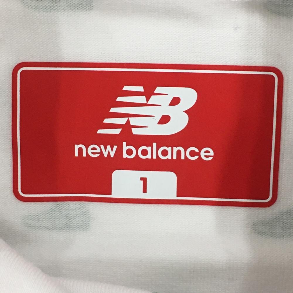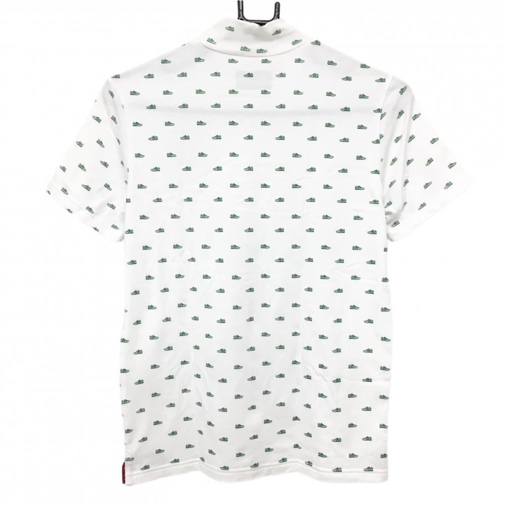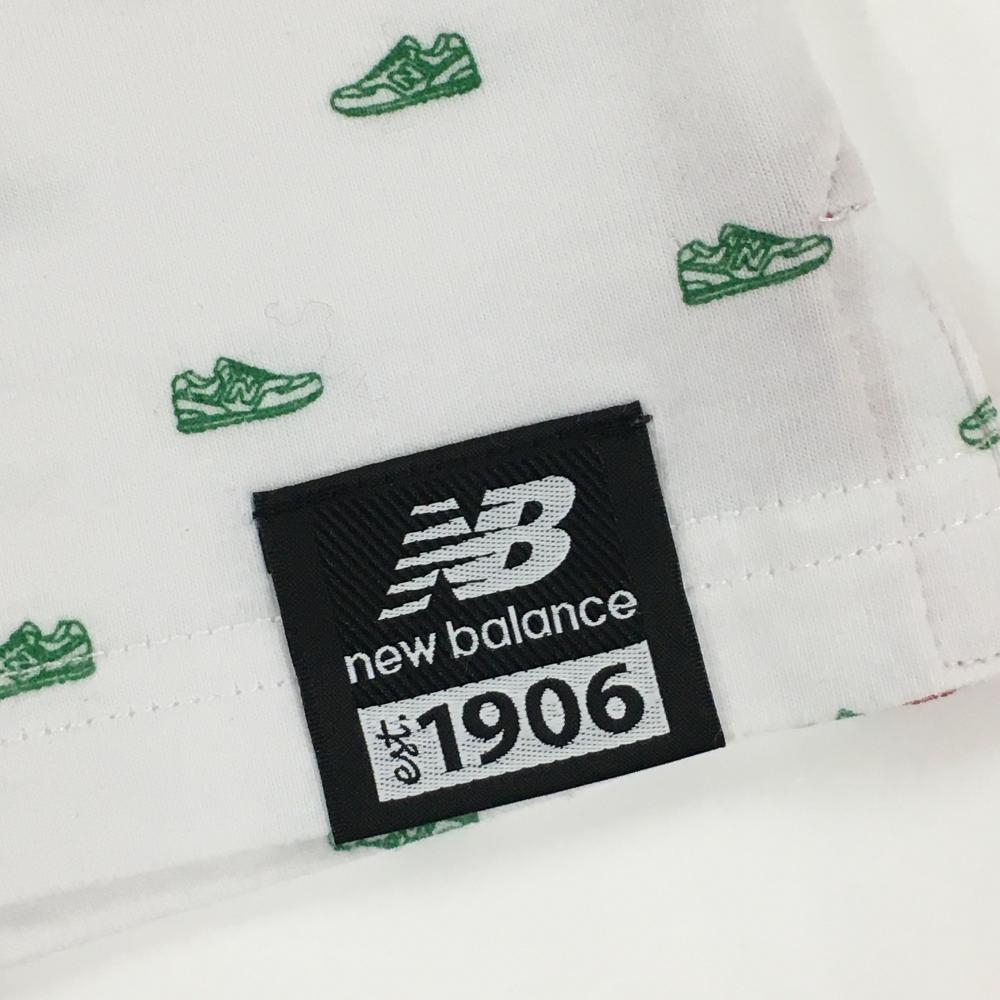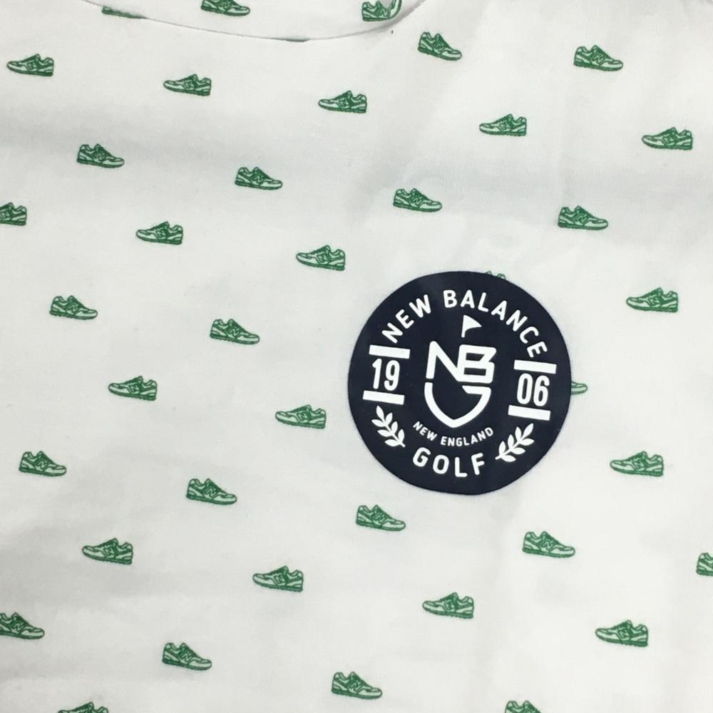 【美品】ニューバランスゴルフ 半袖ハイネックシャツ 白×グリーン シューズ総柄 レディース 1(M) ゴルフウェア New Balance
