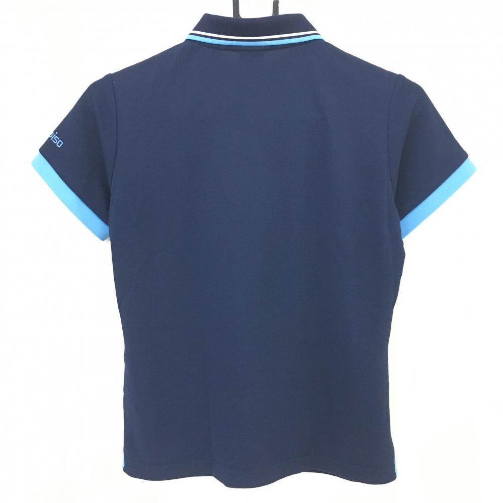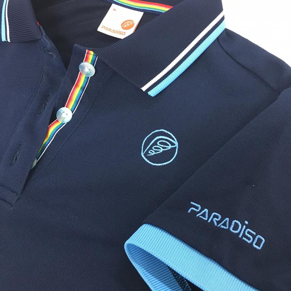 【超美品】パラディーゾ 半袖ポロシャツ ネイビー×ライトブルー 襟ライン レディース M ゴルフウェア Paradiso