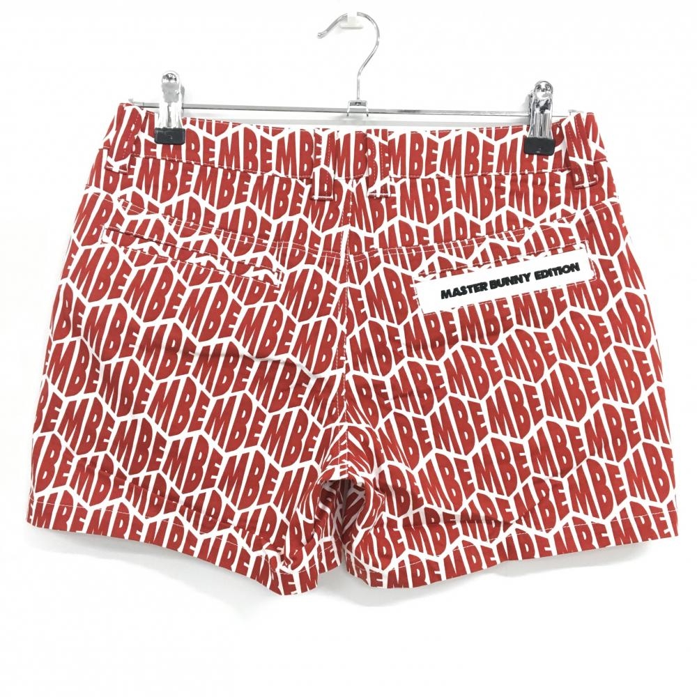 【超美品】マスターバニー ショートパンツ 白×レッド ロゴ総柄 レディース 1(M) ゴルフウェア MASTER BUNNY EDITION