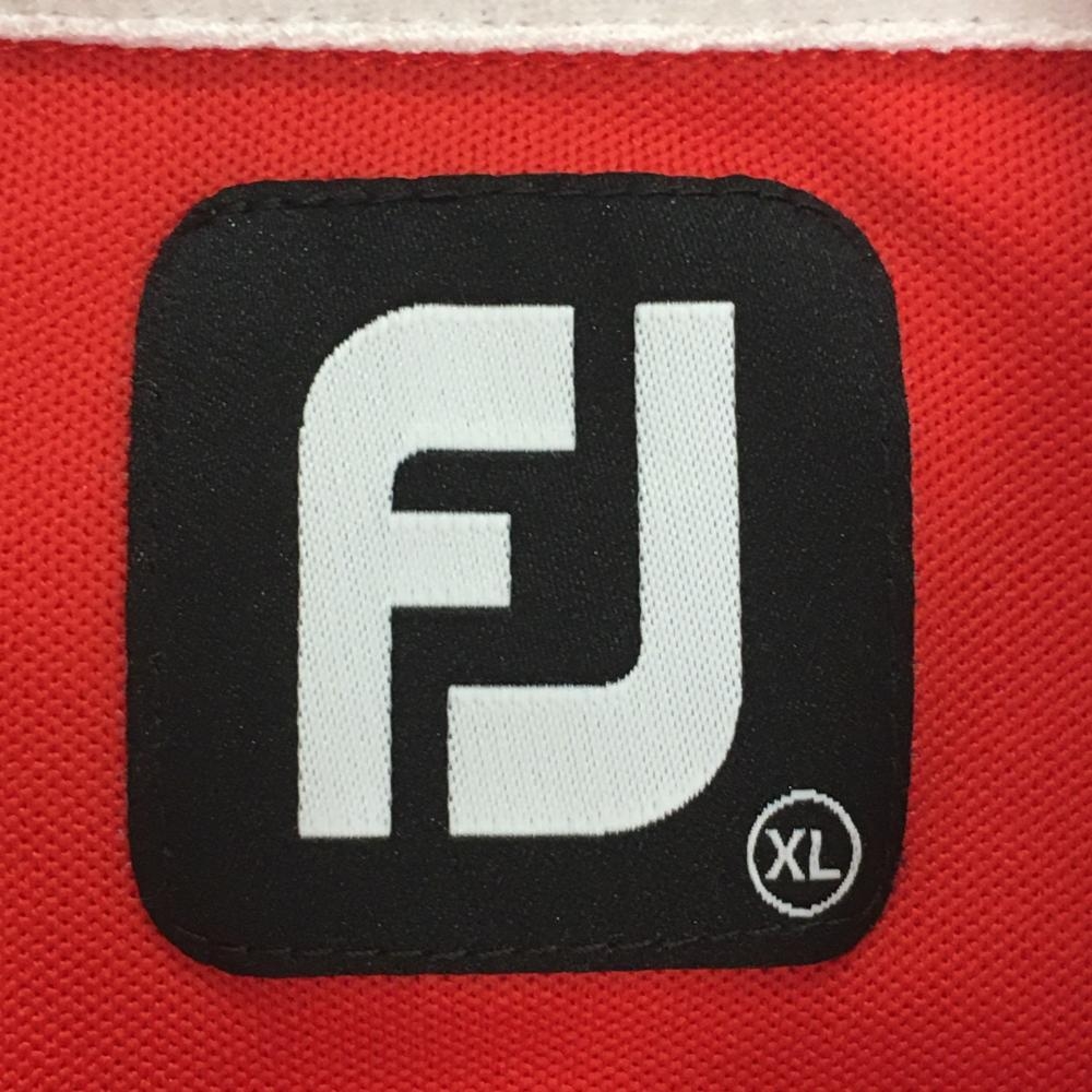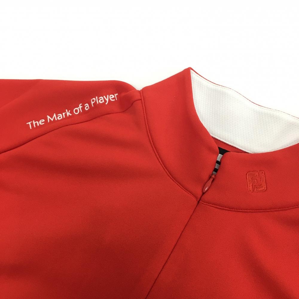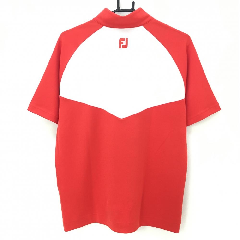 【超美品】フットジョイ 半袖ハイネックシャツ レッド×白 ハーフジップ ネックロゴ メンズ XL ゴルフウェア FootJoy