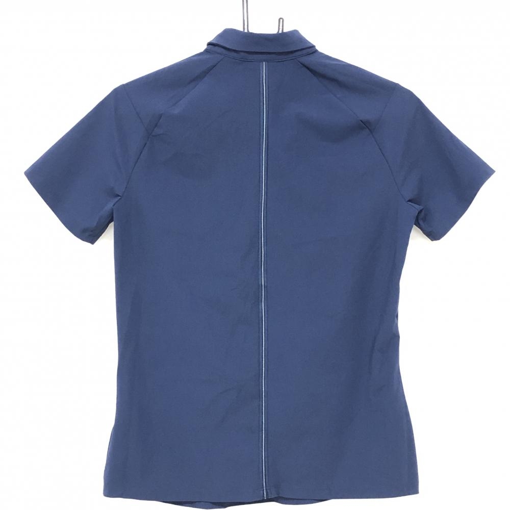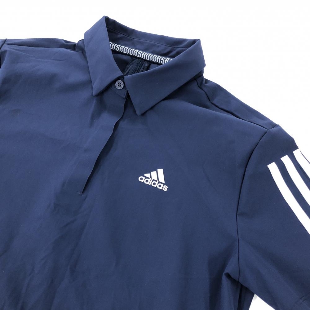 【美品】アディダス 半袖ポロシャツ ネイビー×ライトグレー 肩3ライン レディース L ゴルフウェア adidas