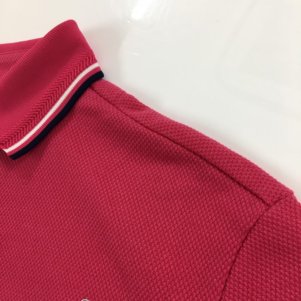 【美品】23区ゴルフ 半袖ポロシャツ ピンク×ネイビー 襟袖口ライン 織生地 メンズ M ゴルフウェア 23区
