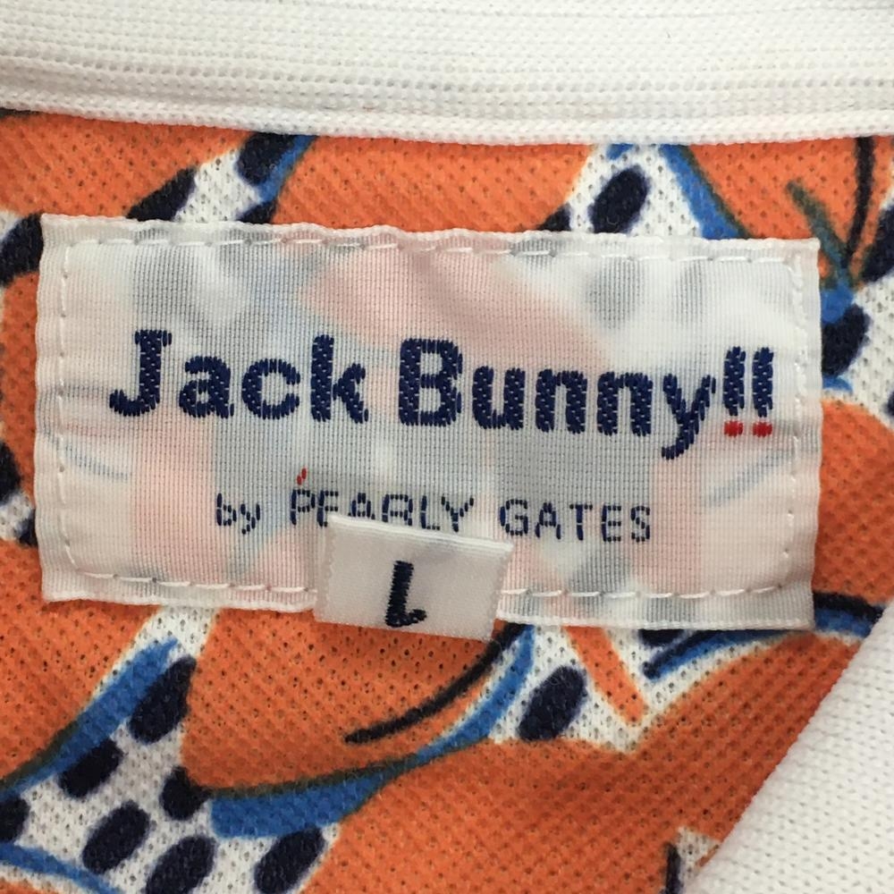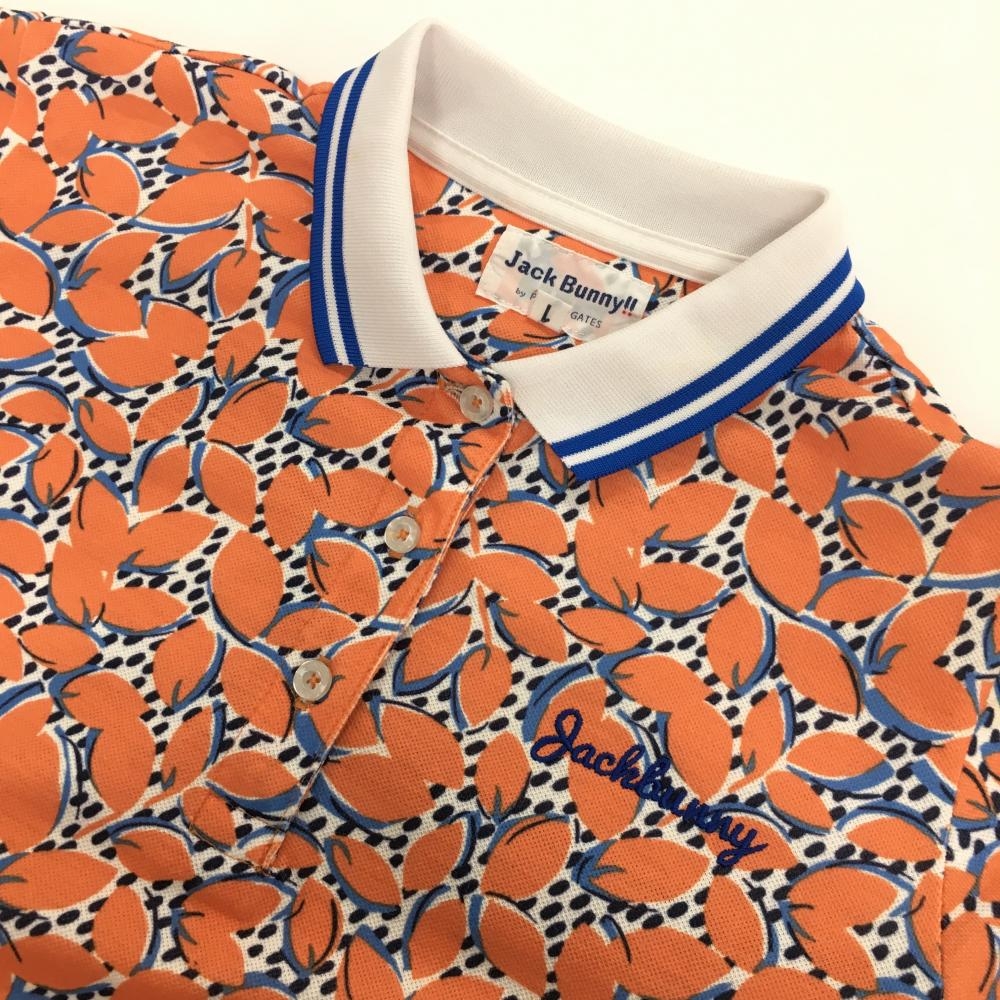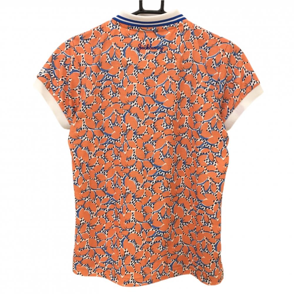 ジャックバニー 半袖ポロシャツ 白×オレンジ リーフ柄 ロゴ刺しゅう レディース 1(M) ゴルフウェア Jack Bunny