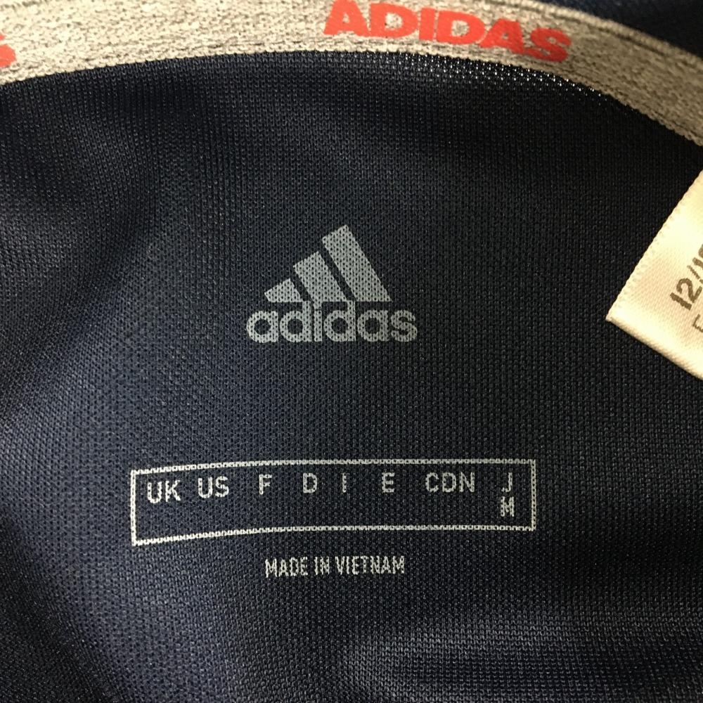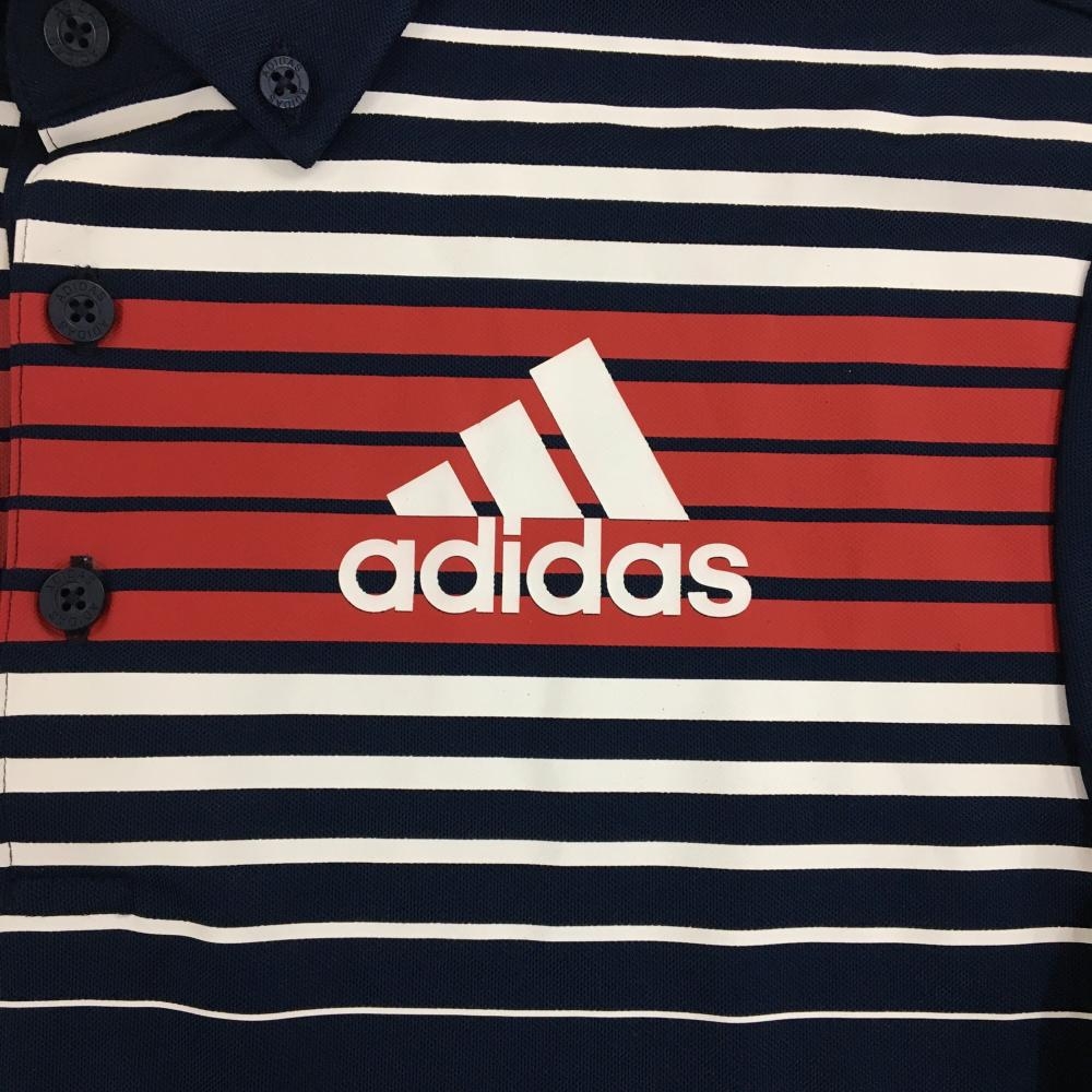 【超美品】アディダス 半袖ポロシャツ ネイビー×白 上部ボーダー ボタンダウン メンズ M ゴルフウェア adidas