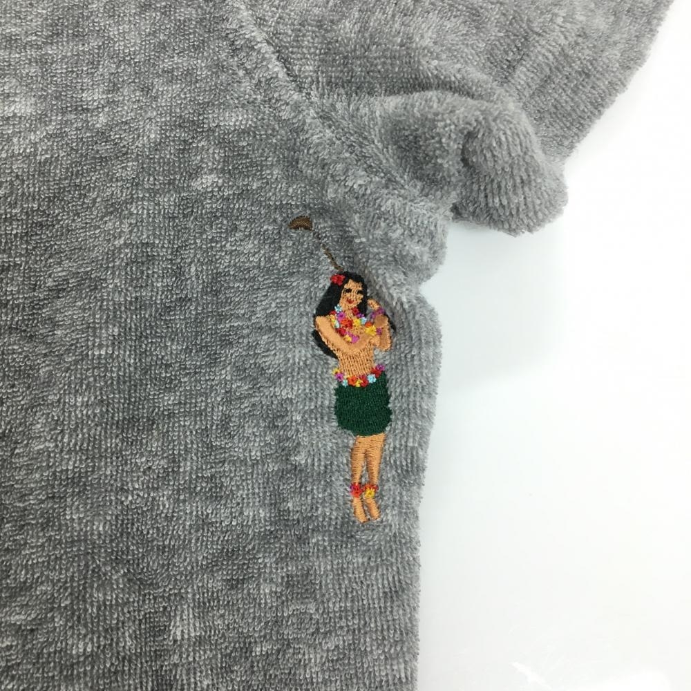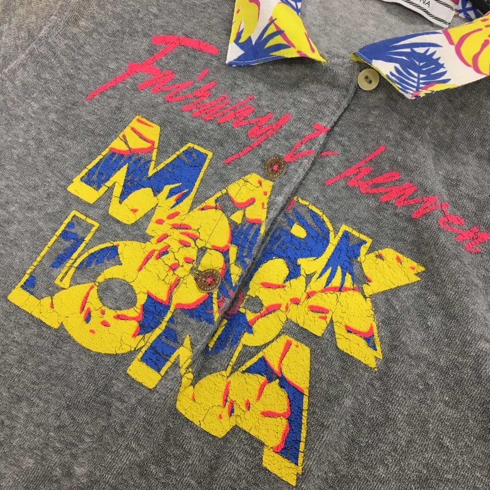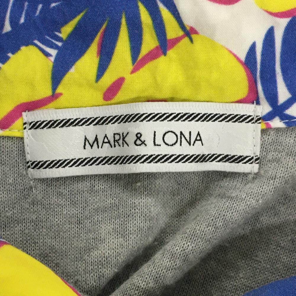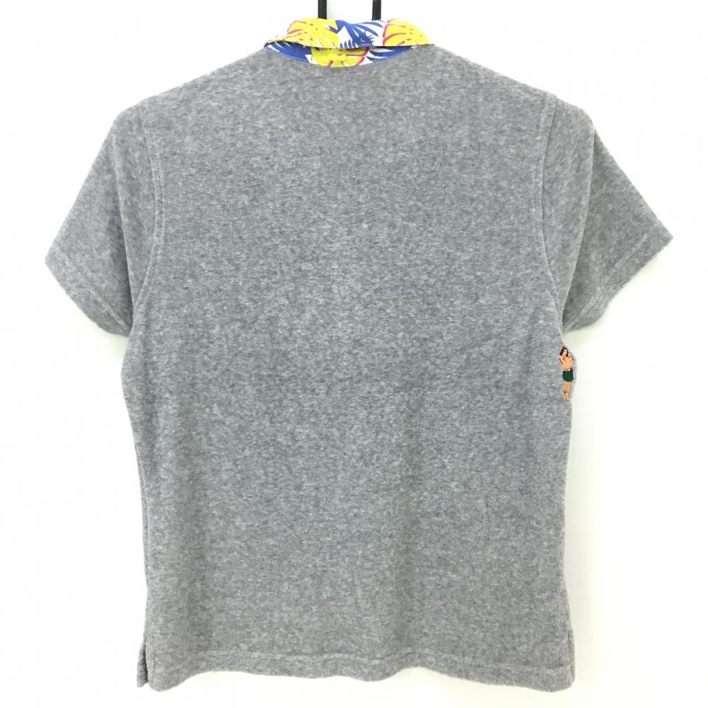 【美品】マークアンドロナ 半袖ポロシャツ グレー×イエロー パイル地 襟リーフ柄 レディース M ゴルフウェア MARK&LONA