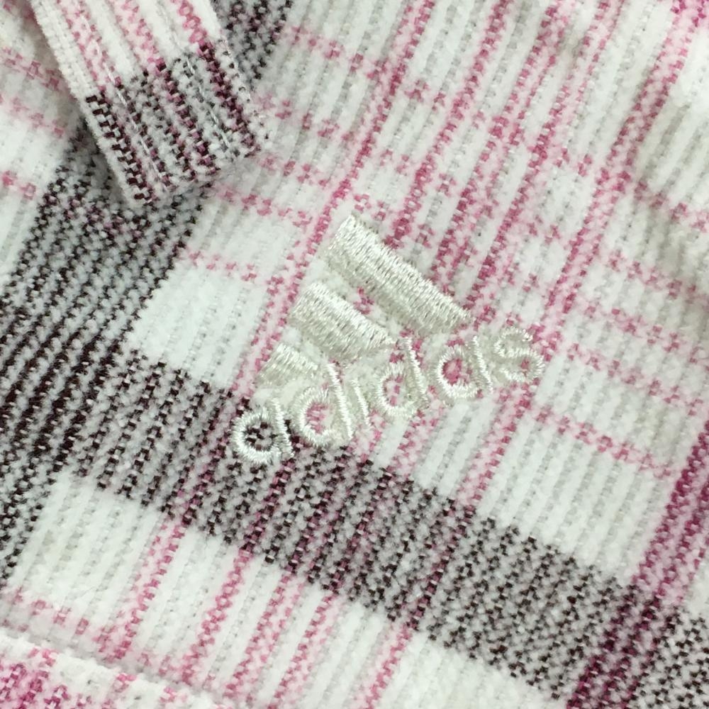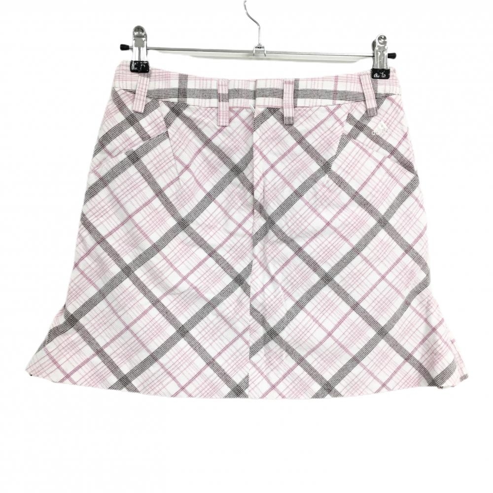 【美品】アディダス コーデュロイスカート 白×ピンク チェック レディース M/M ゴルフウェア adidas