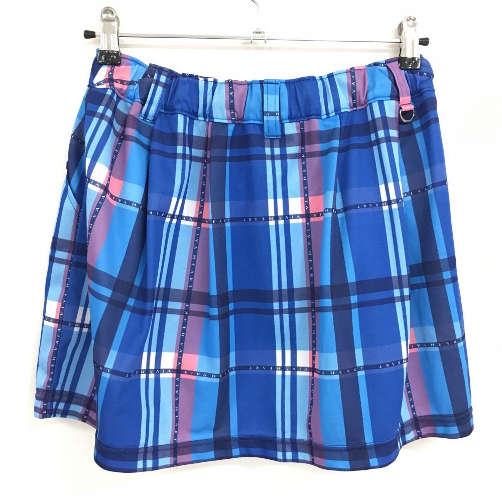 【超美品】ビバハート スカート ブルー×ピンク チェック ウエストゴム&調節紐 レディース 38(S) ゴルフウェア VIVA HEART
