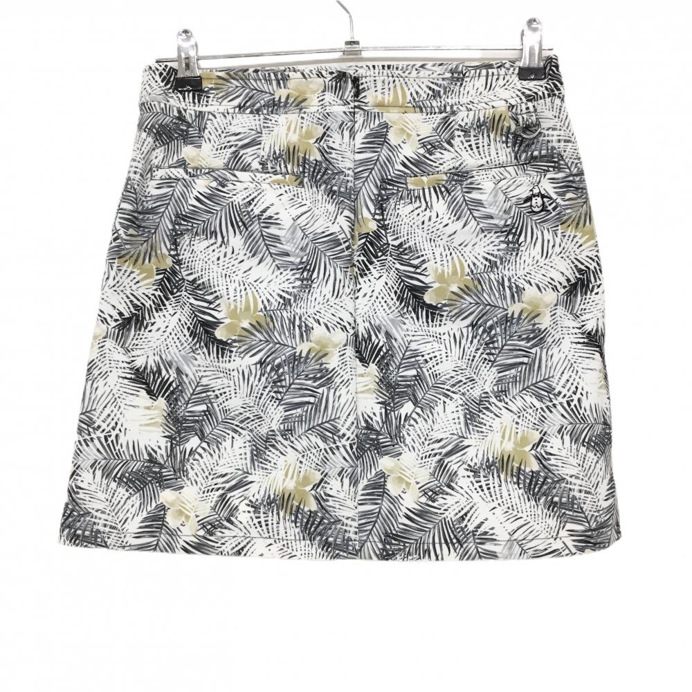 【超美品】マンシングウェア スカート 白×グレー×ベージュ ボタニカル柄 巻きスカート風 レディース 9 ゴルフウェア Munsingwear