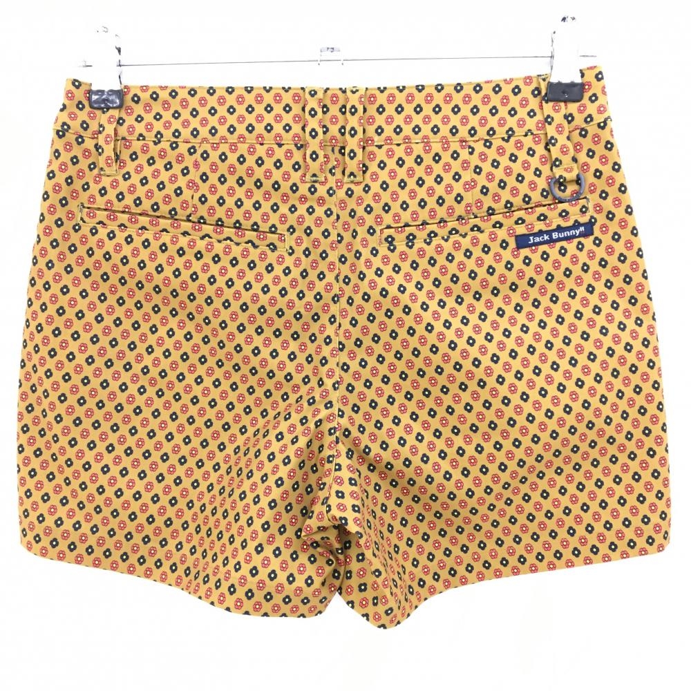 【超美品】ジャックバニー ショートパンツ イエローブラウン×黒 花柄 バックロゴ レディース 0(S) ゴルフウェア Jack Bunny