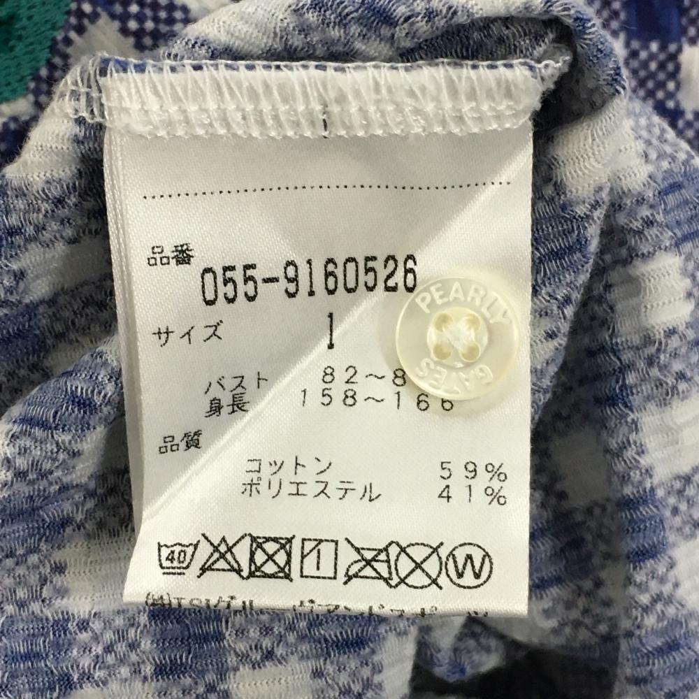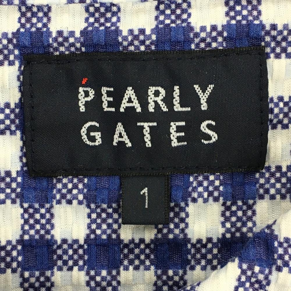 【超美品】パーリーゲイツ ノースリーブポロシャツ ブルー×白 チェック サッカー生地調 レディース 1(M) ゴルフウェア PEARLY GATES