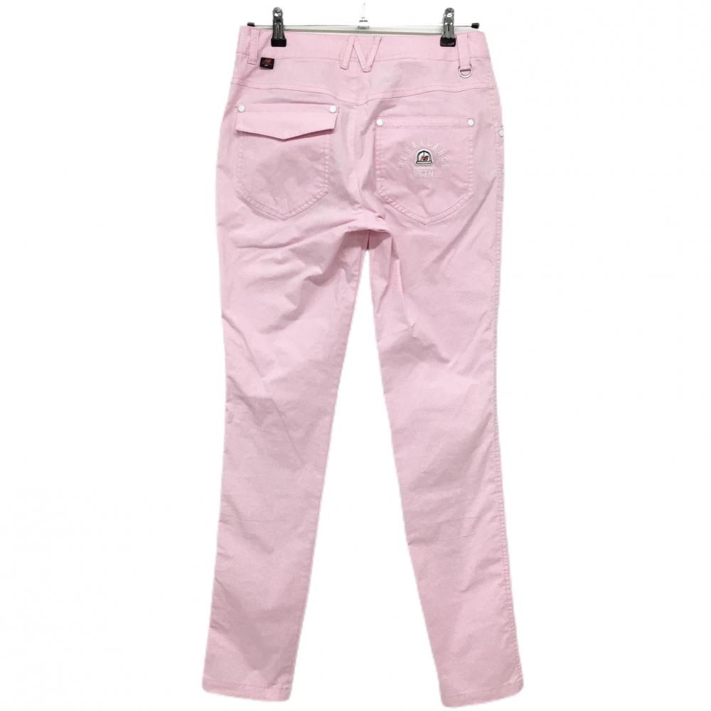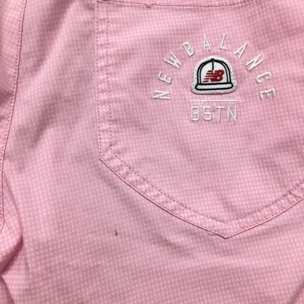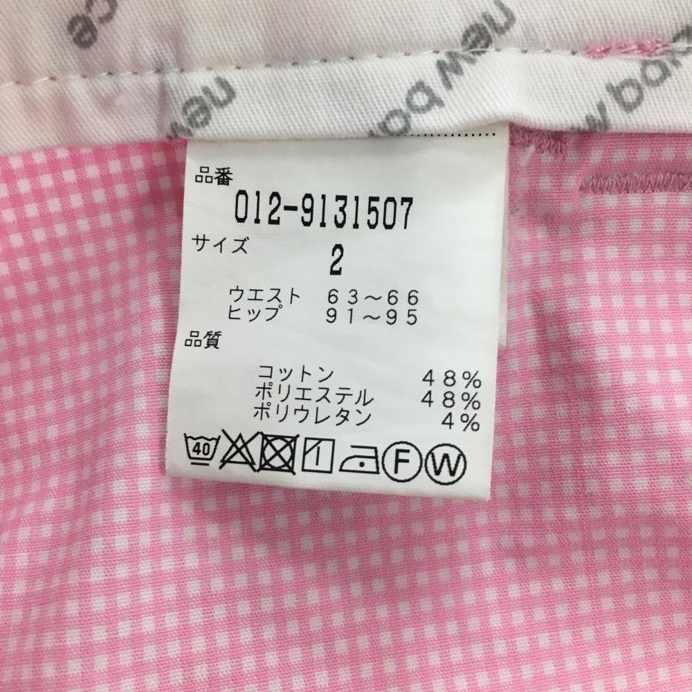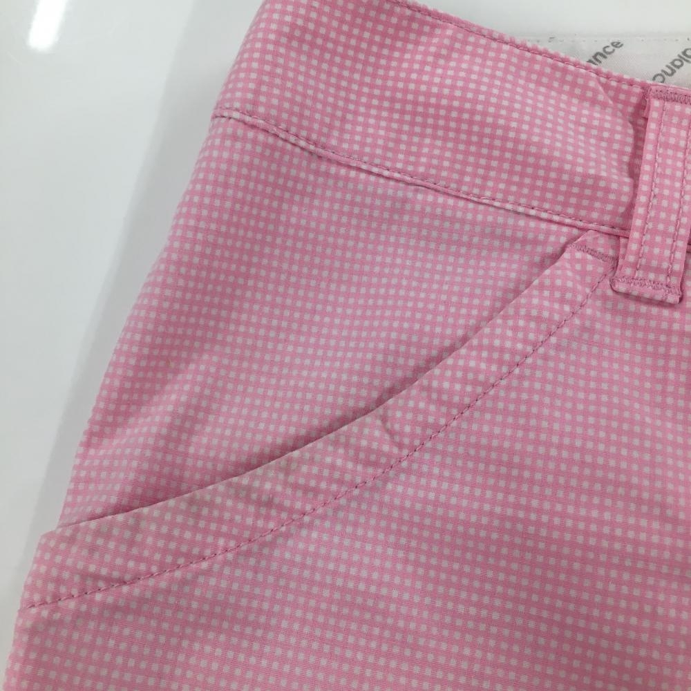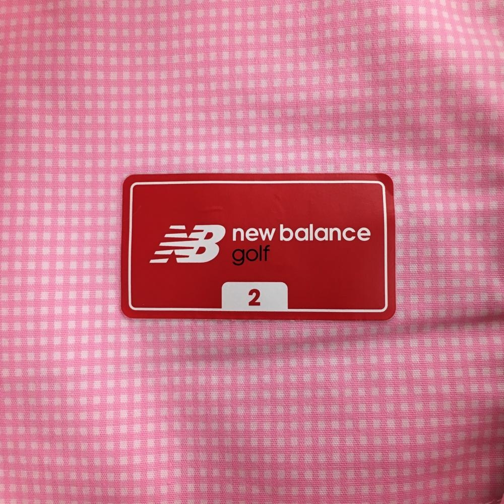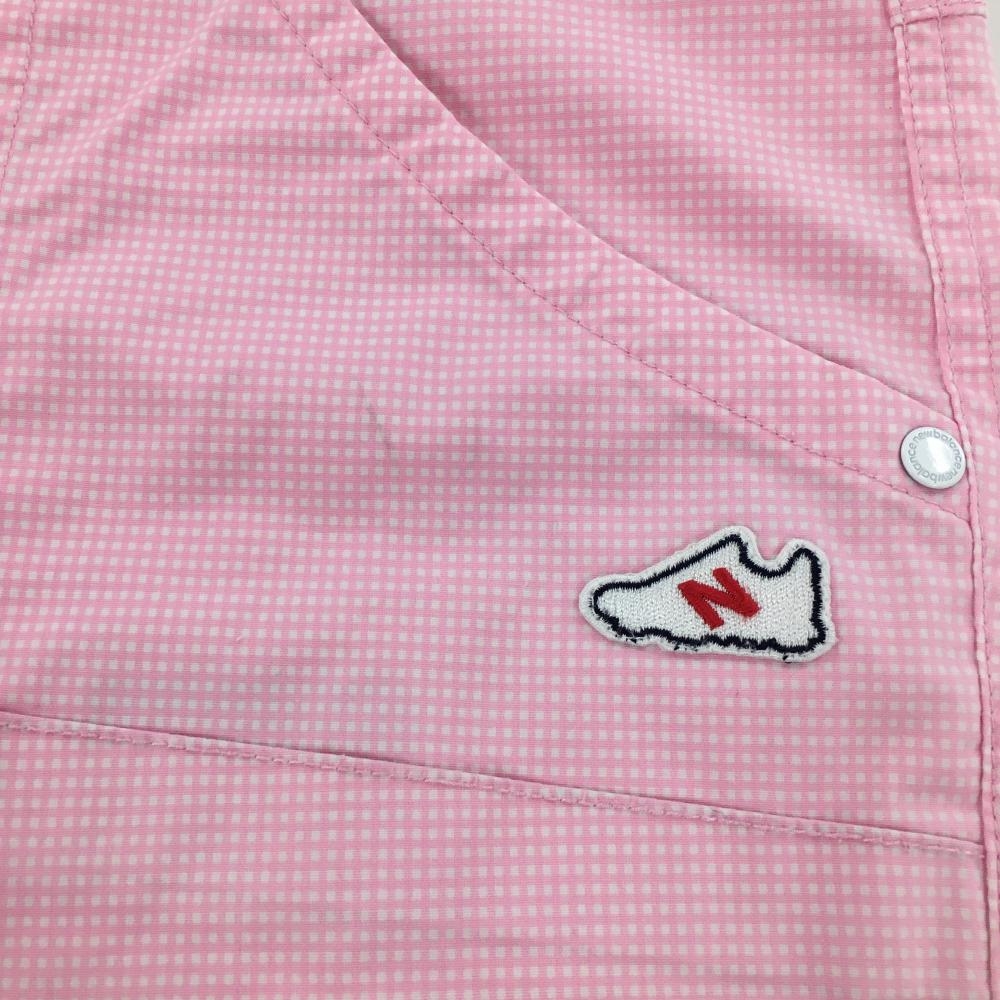 【美品】ニューバランスゴルフ パンツ ピンク×白 ギンガムチェック ストレッチ レディース 2(L) ゴルフウェア New Balance