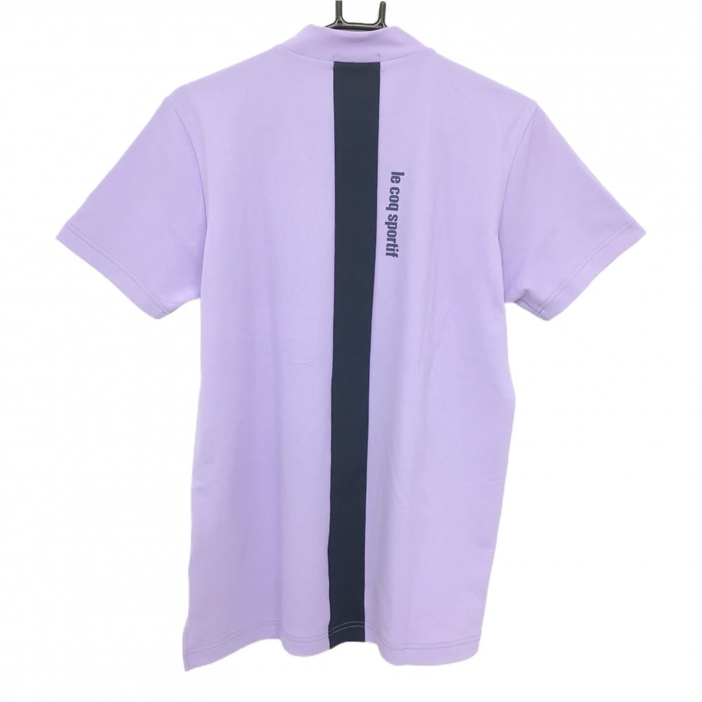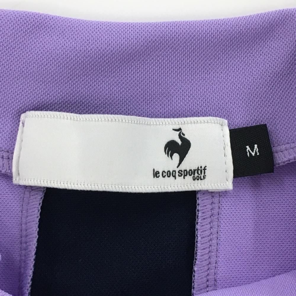 【超美品】ルコックゴルフ 半袖ハイネックシャツ パープル×ダークネイビー 後ろセンターライン メンズ M ゴルフウェア le coq sportif