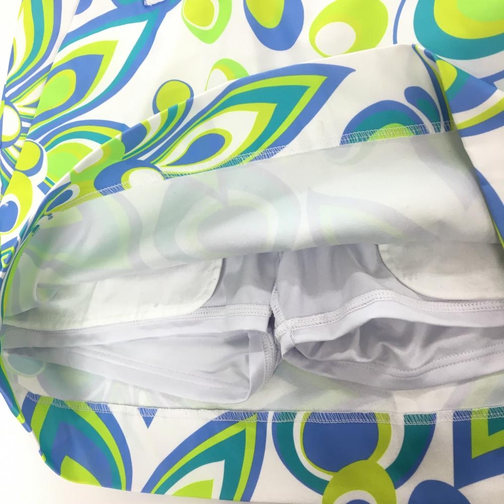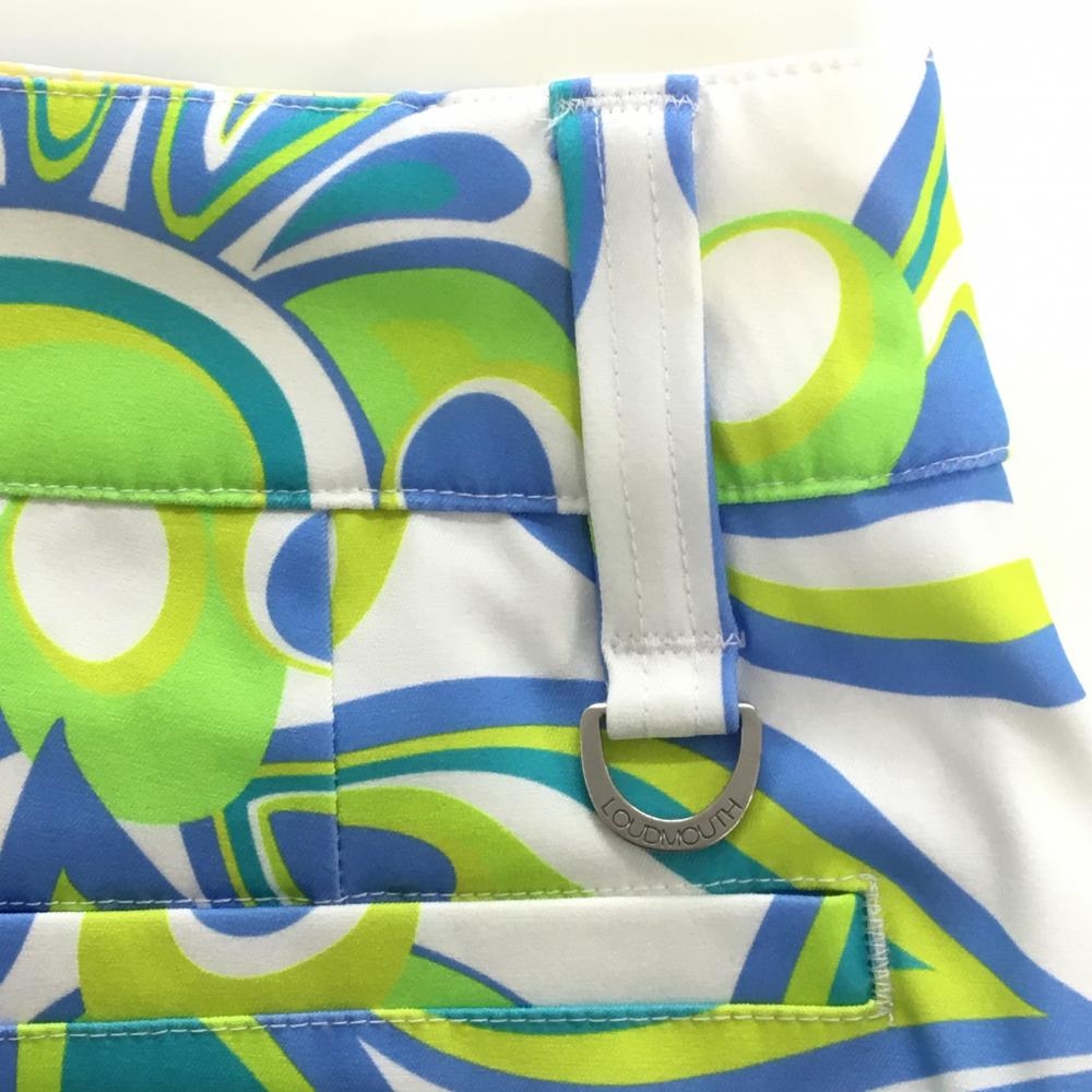 【超美品】ラウドマウス スカート 白×ライトグリーン×ブルー シャガデリック 内側インナーパンツ レディース S ゴルフウェア LOUDMOUTH
