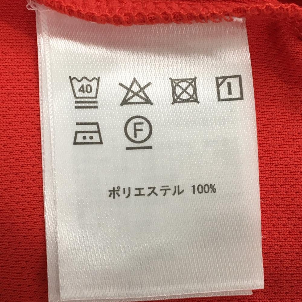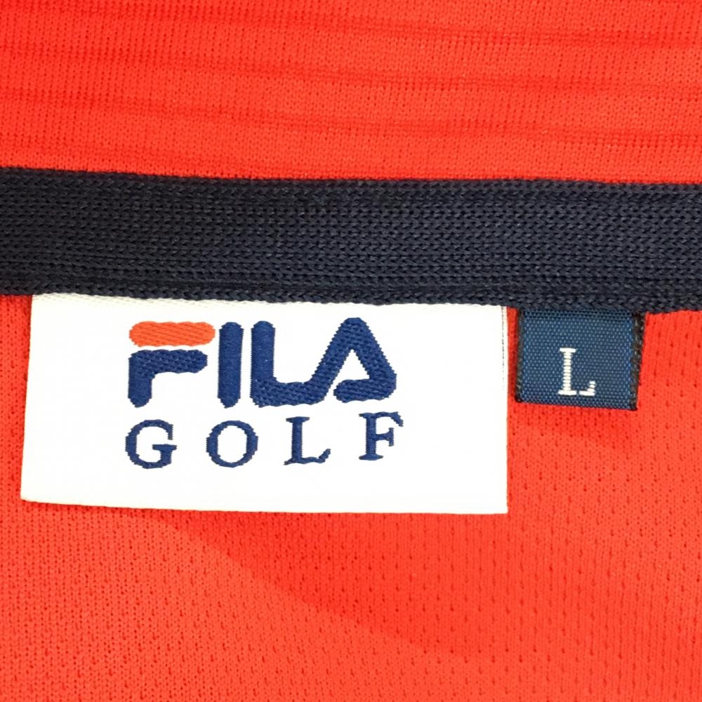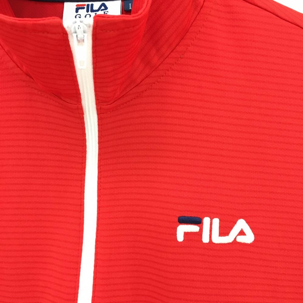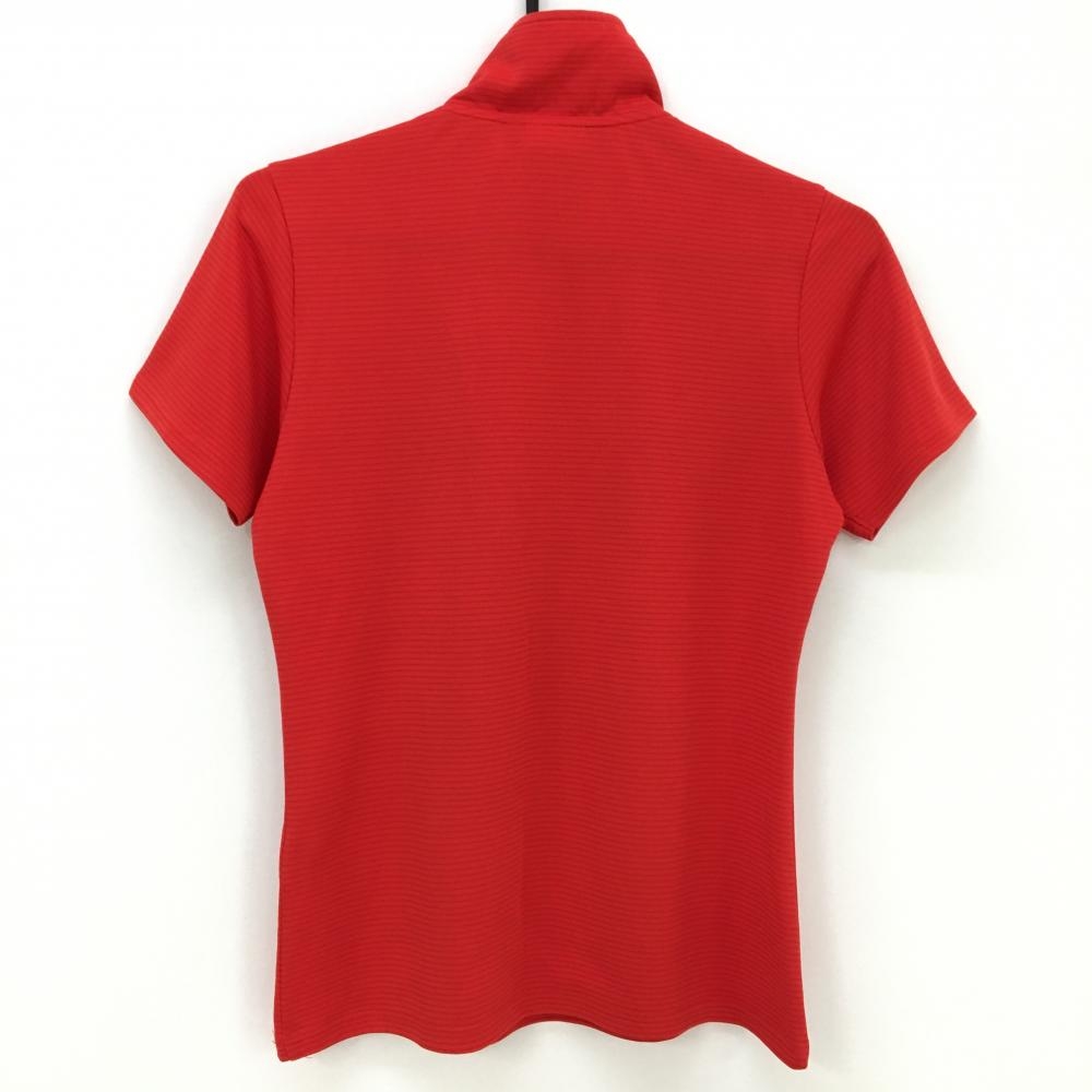 【超美品】フィラゴルフ 半袖ハイネックシャツ レッド ボーダー地模様 ロゴ刺しゅう ハーフジップ レディース L ゴルフウェア FILA GOLF